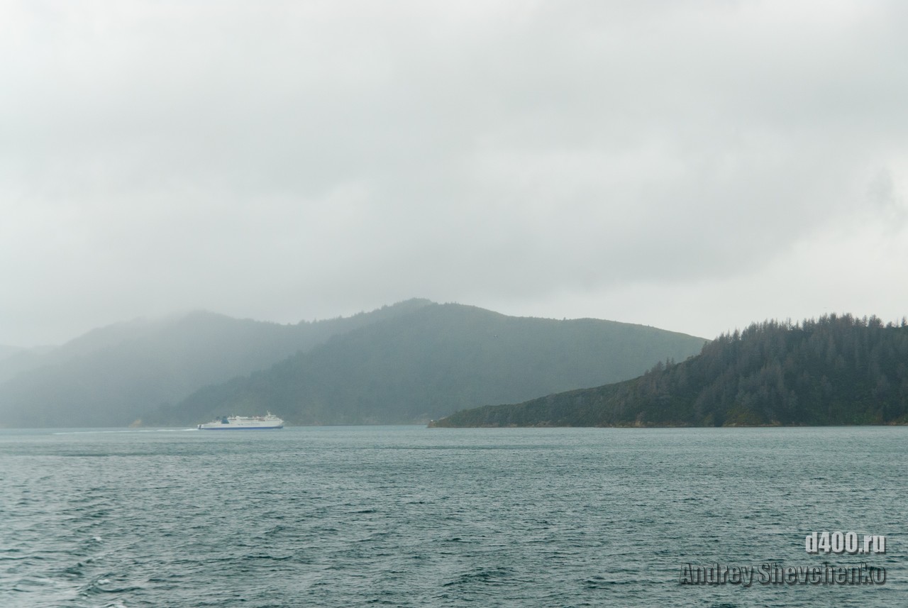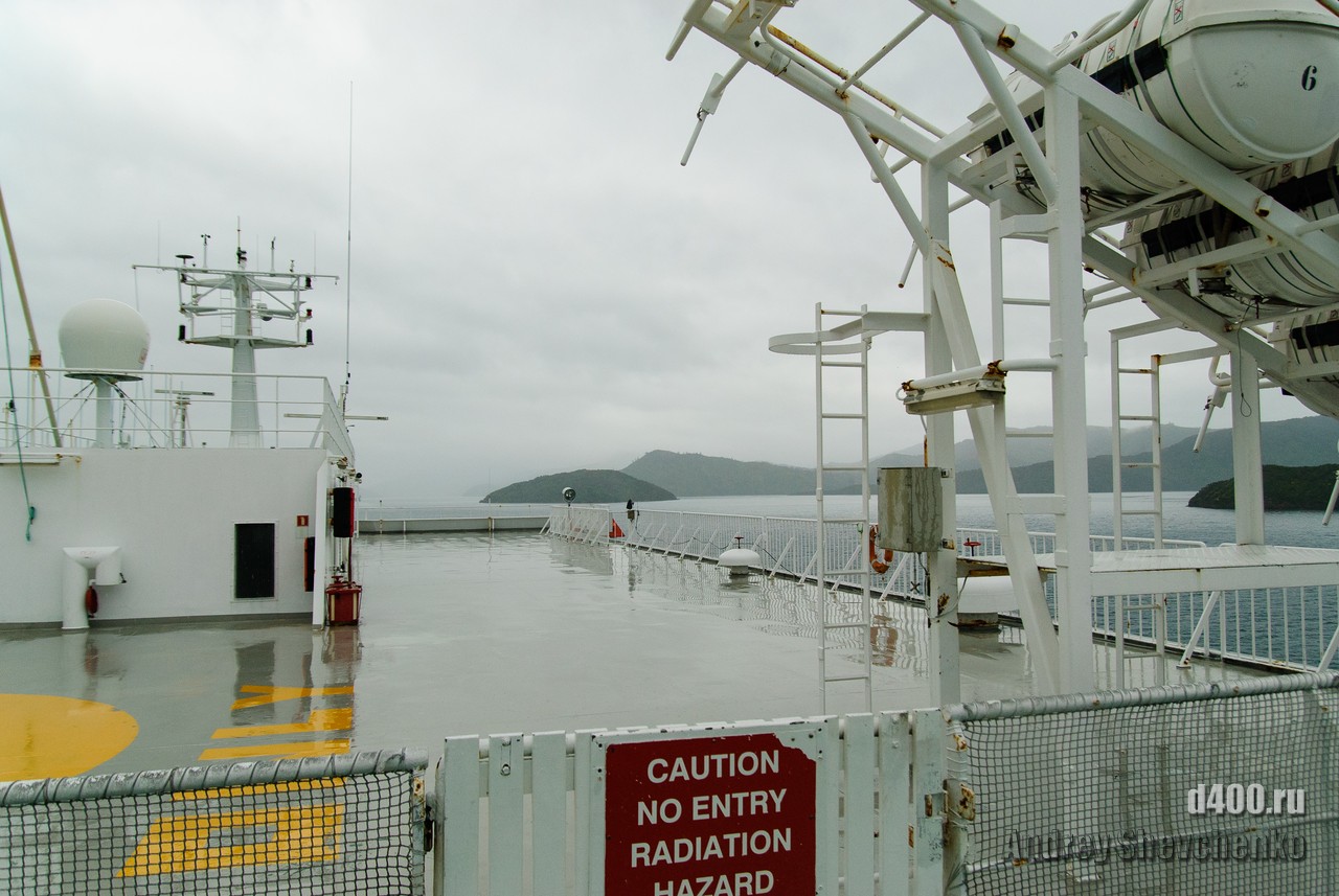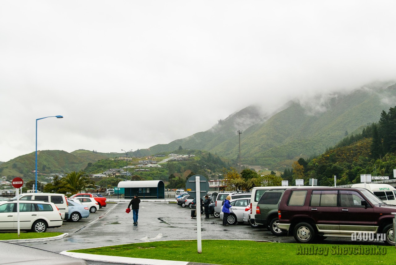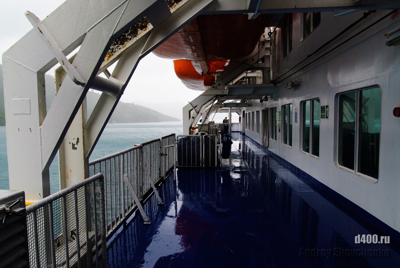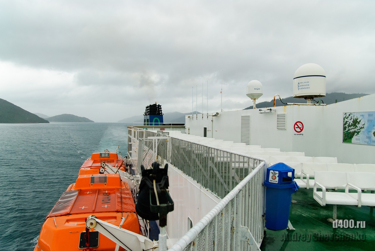 The first rain during my stay in Wellington was on the day I sailed to Picton, before which it had been sunny and rain-free all week. The process of boarding the ferry is similar to that of an airplane, only the luggage is not screened, and so everything is like the big iron birds - check-in, waiting in another hall and passing through the teletrap. The most exciting thing for me was that I was going traveling alone, and, as it turned out, with virtually no knowledge of English. Sure I could buy food and knew what to yell once I was overboard, but 99% of what was said to me I didn't understand a damn thing 🙁