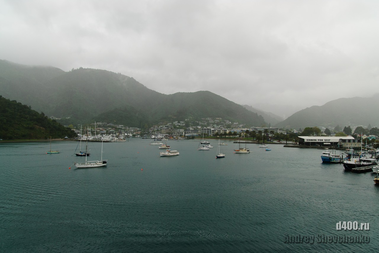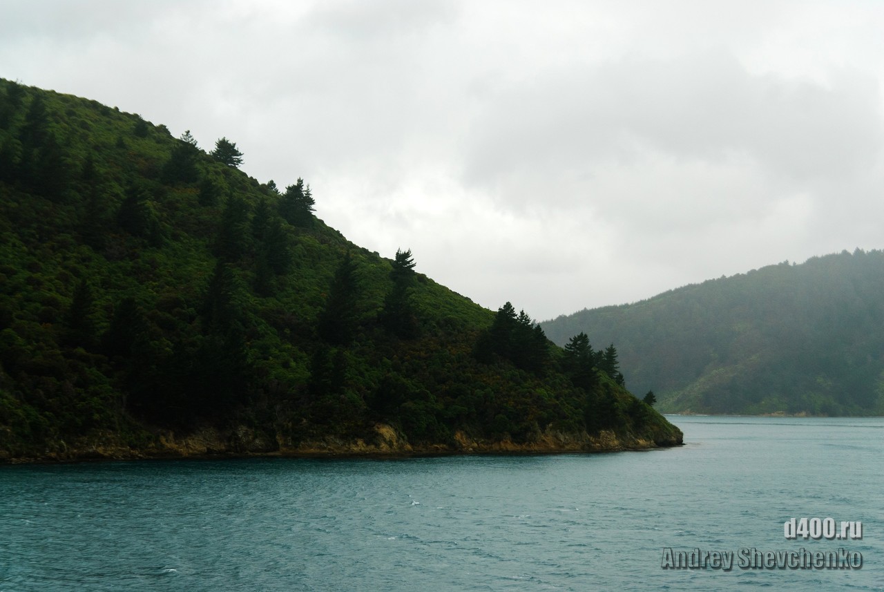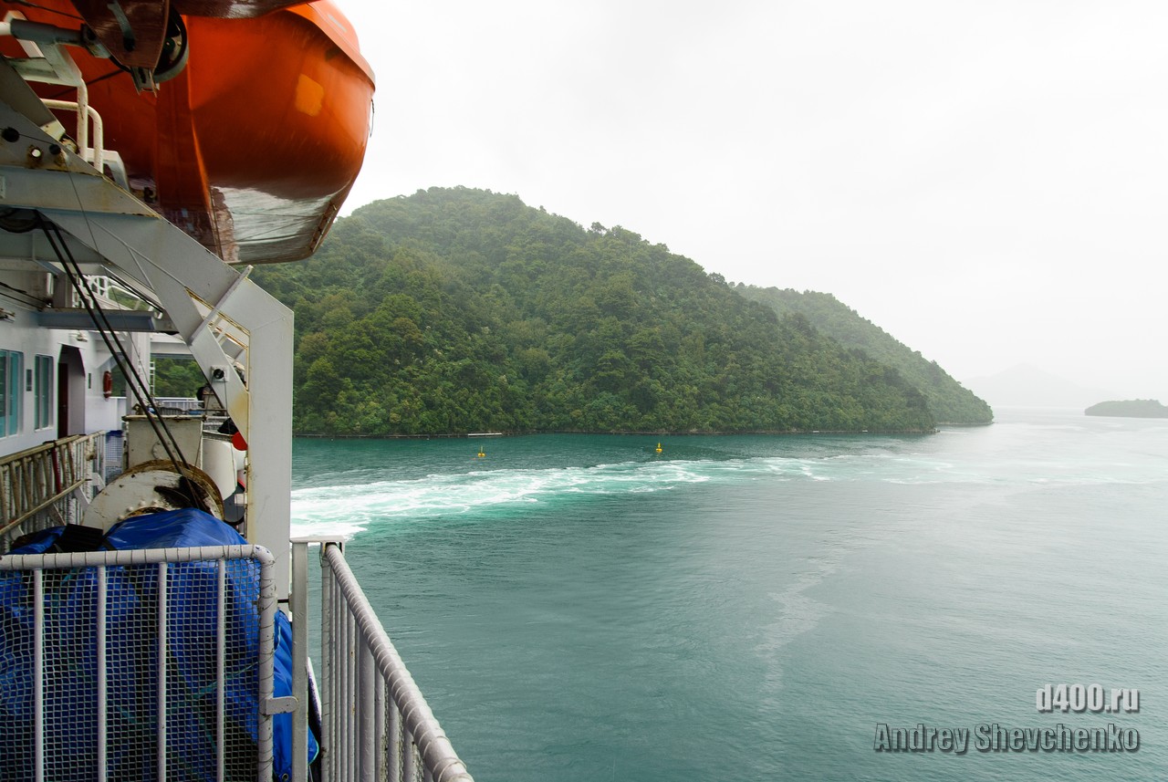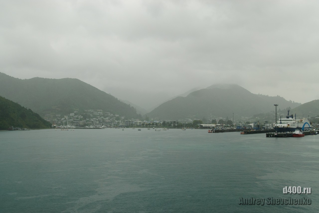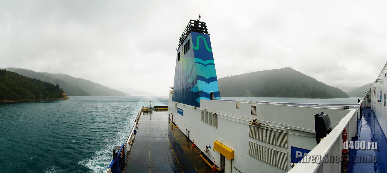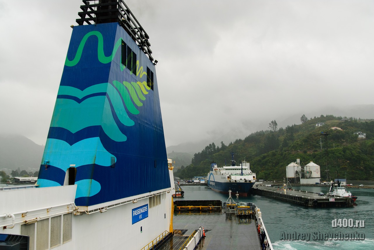 The first rain during my stay in Wellington was on the day I sailed to Picton, before which it had been sunny and rain-free all week. The process of boarding the ferry is similar to that of an airplane, only the luggage is not screened, and so everything is like the big iron birds - check-in, waiting in another hall and passing through the teletrap. The most exciting thing for me was that I was going traveling alone, and, as it turned out, with virtually no knowledge of English. Sure I could buy food and knew what to yell once I was overboard, but 99% of what was said to me I didn't understand a damn thing 🙁