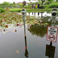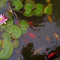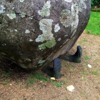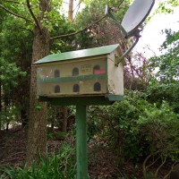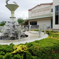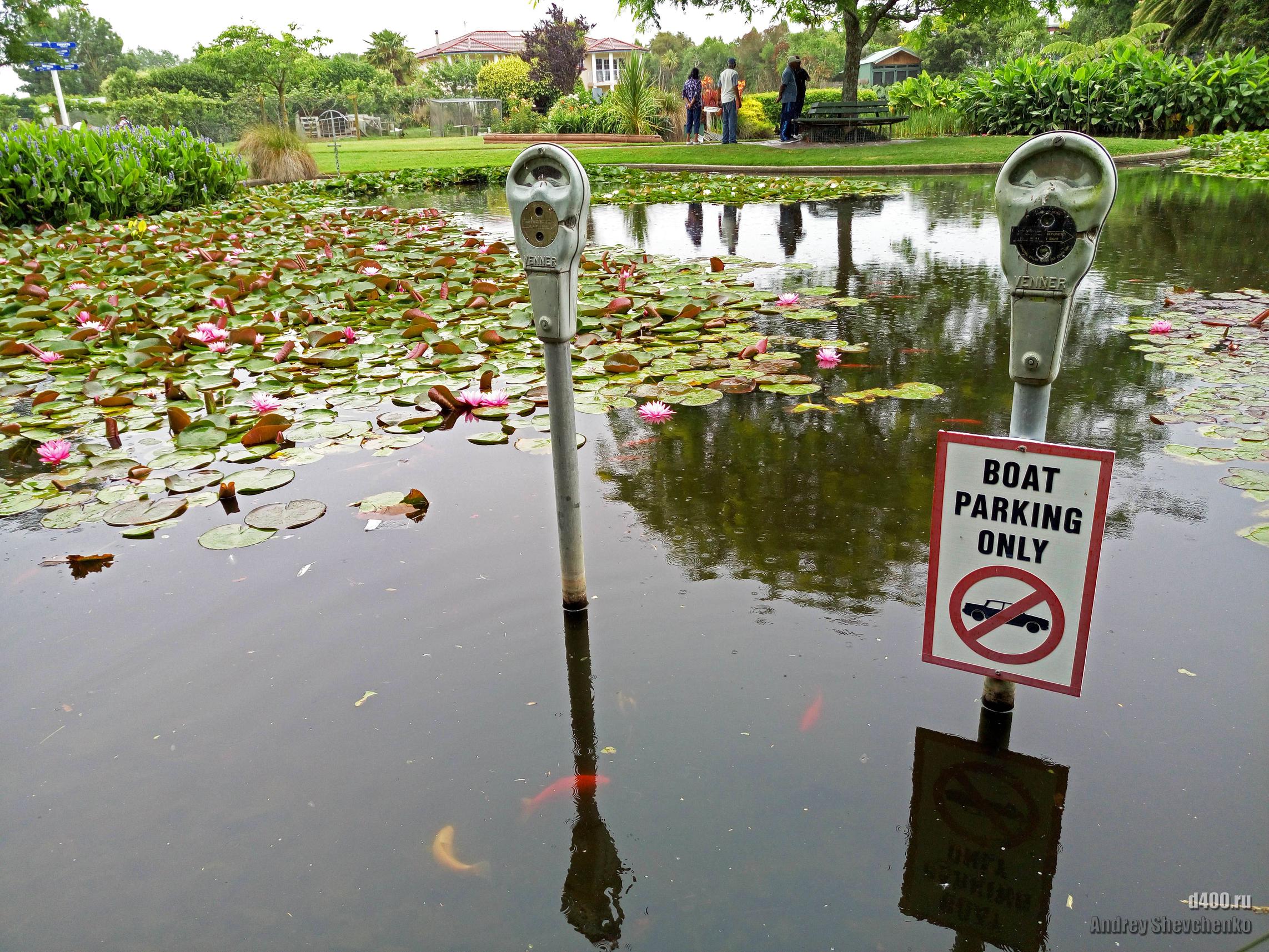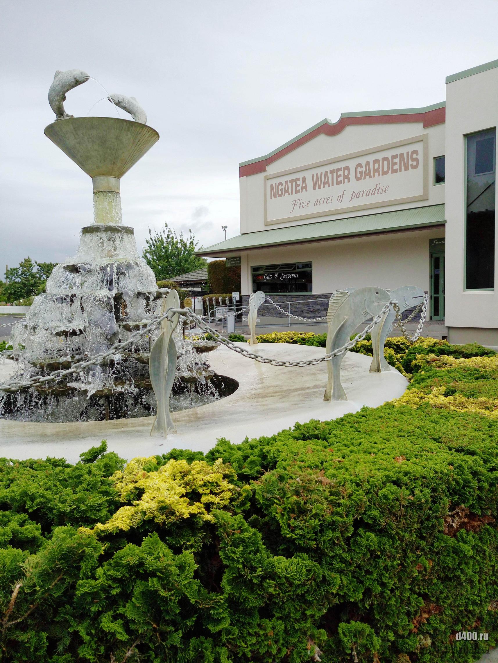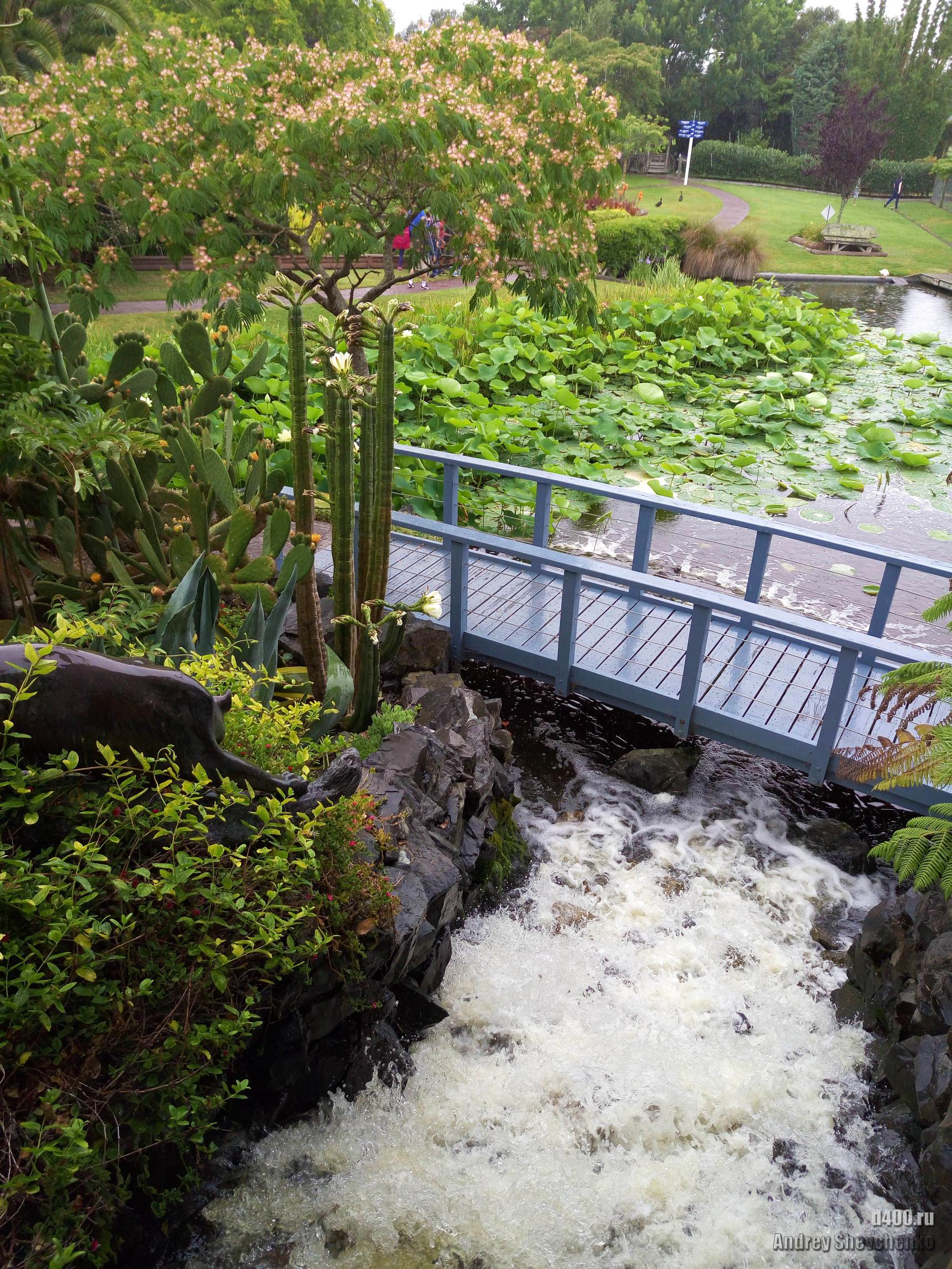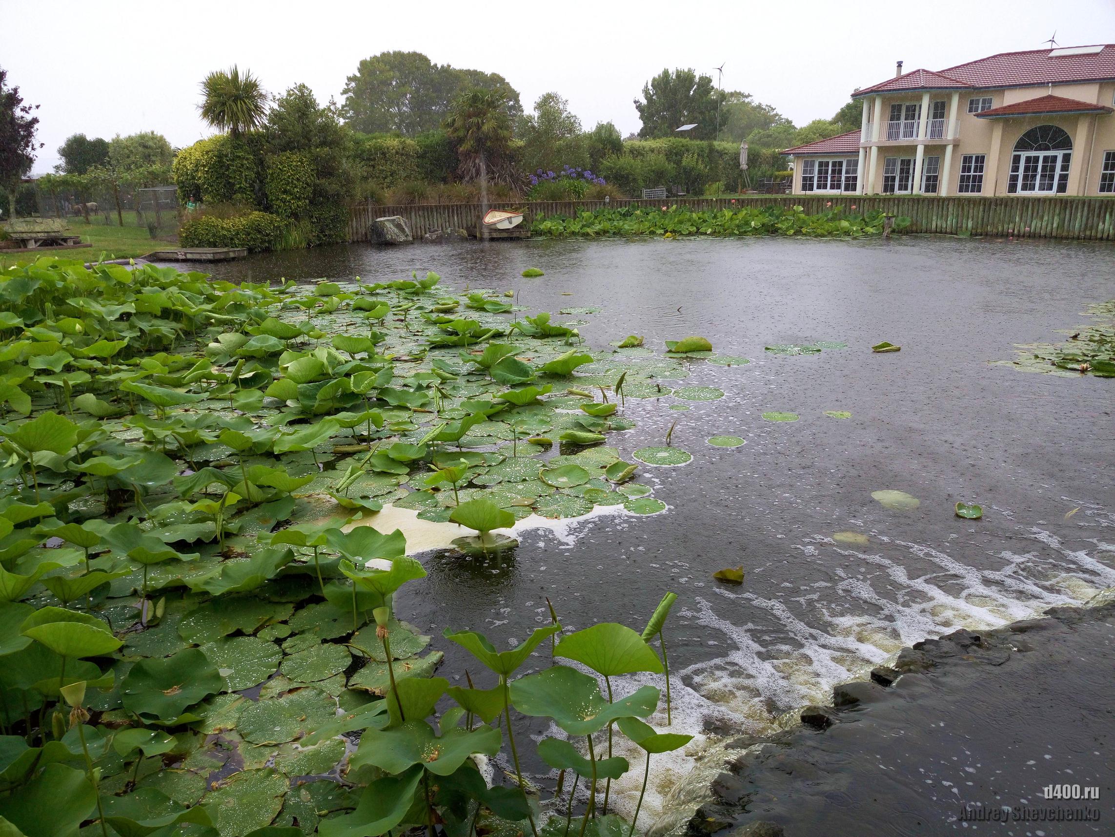 I don't know how to translate water garden, something like a garden with a pond... A place with the Maori name Ngatea has a very famous garden. It is known not only for the fact that there is a lot of vegetation, but also for the unbridled sense of humor of its owners, which spills out in unexpected installations and compositions. It rained very luckily while fording and produced lots of colors with droplets.