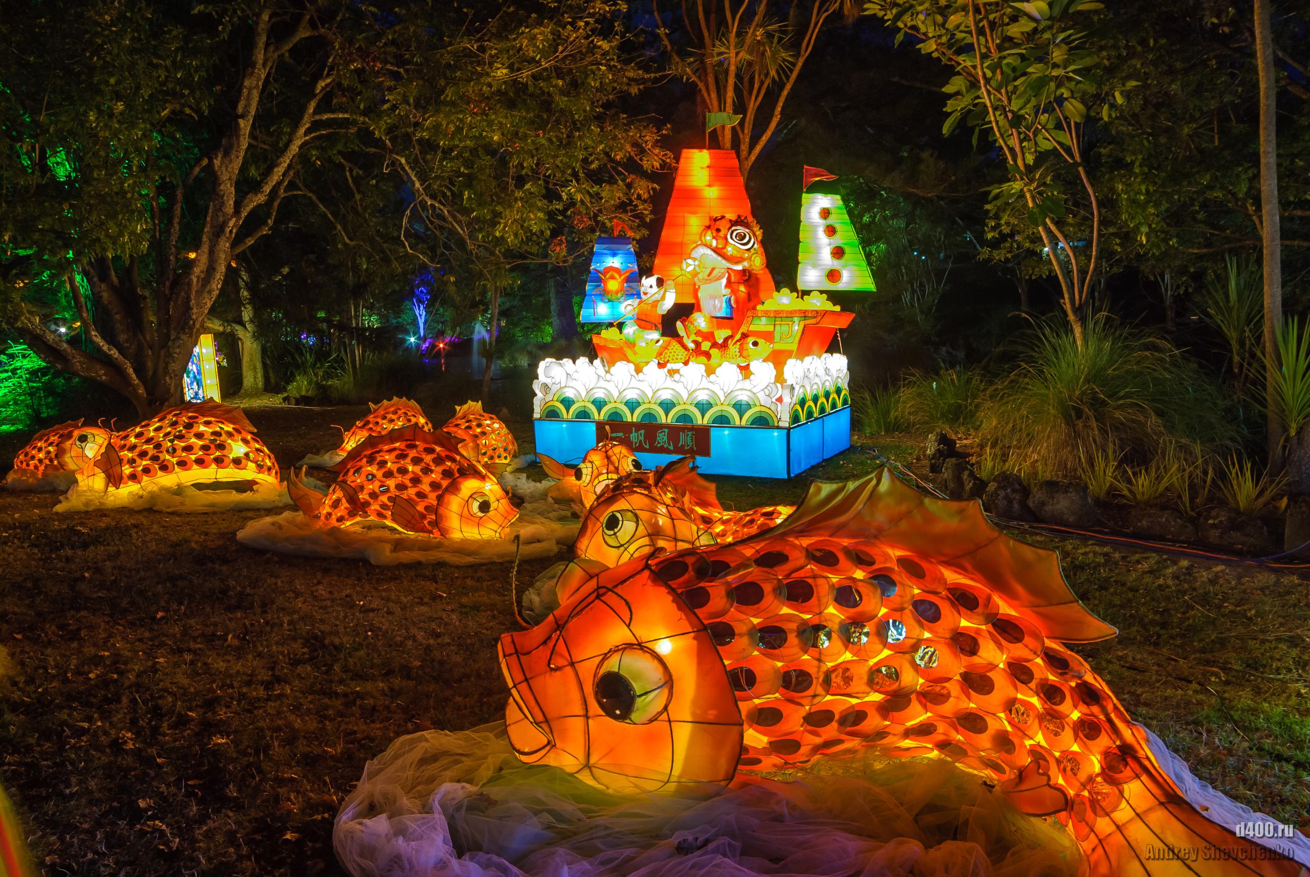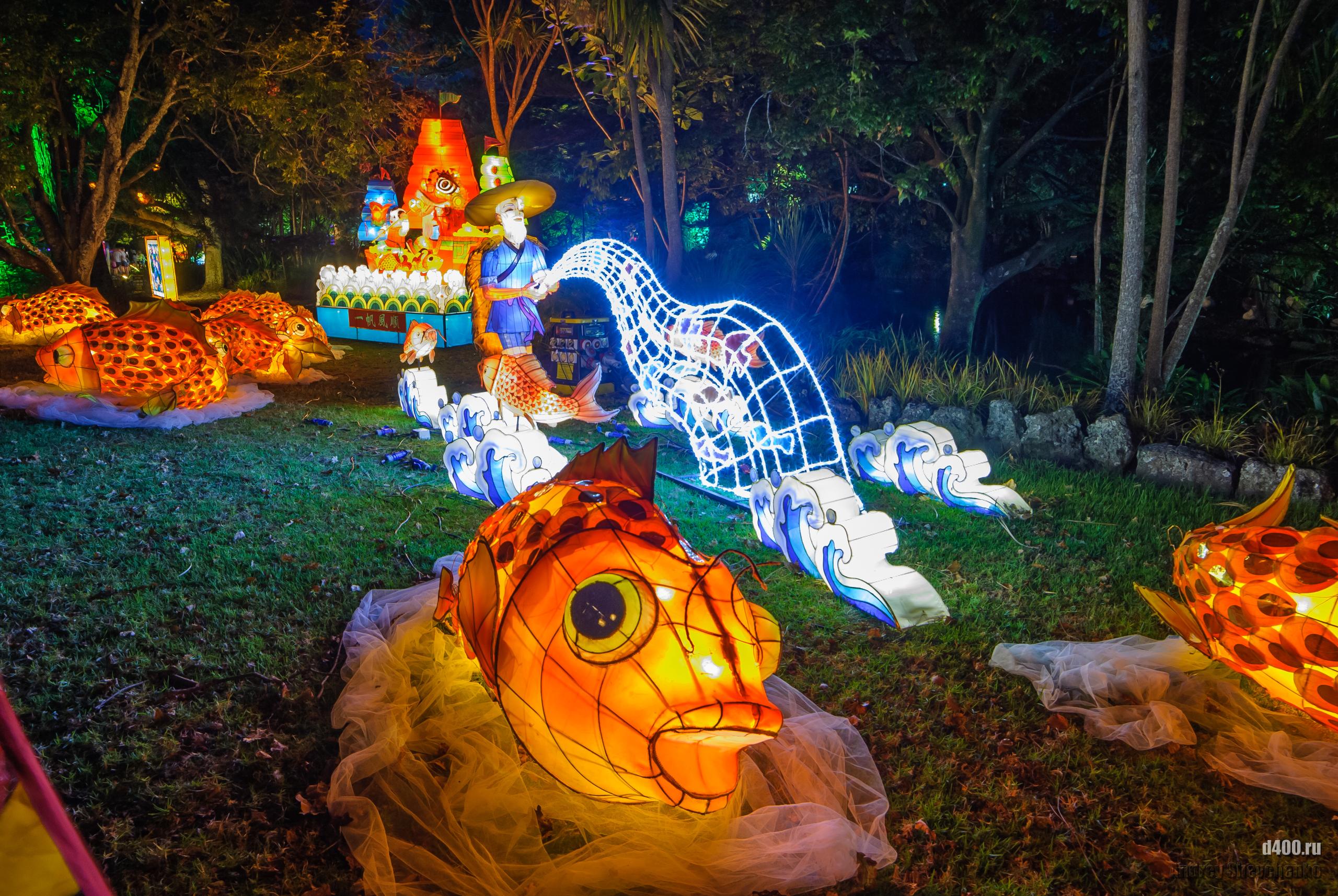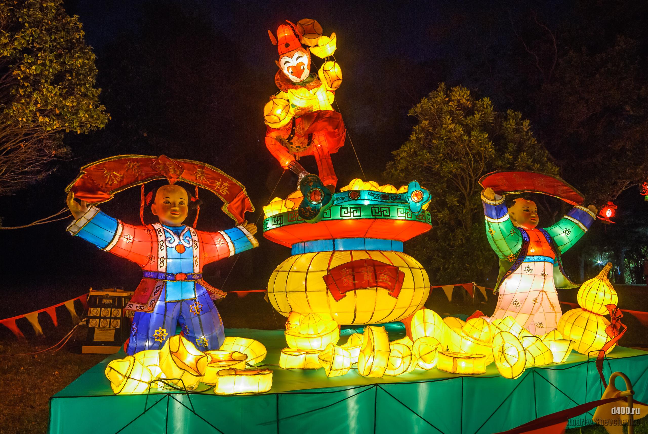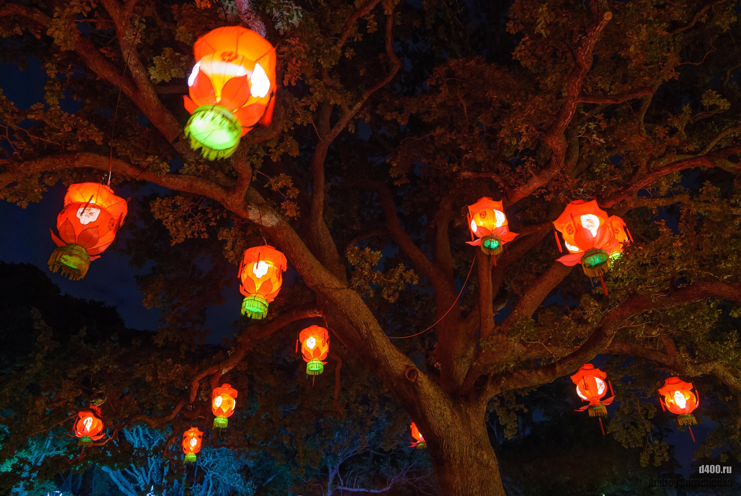 For several years now, every year on Chinese Lunar New Year, Oakland has hosted a Chinese Lantern Festival. Although I would call these glowing sculptures 🙂 for they are very large for flashlights. Several hundred glowing figurines were collected in Oakland's Domein Park (more than 800 according to official records). Some were funny, some were more or less gaunt 🙂 Besides the lanterns, the trees lit up with different colors looked cool.