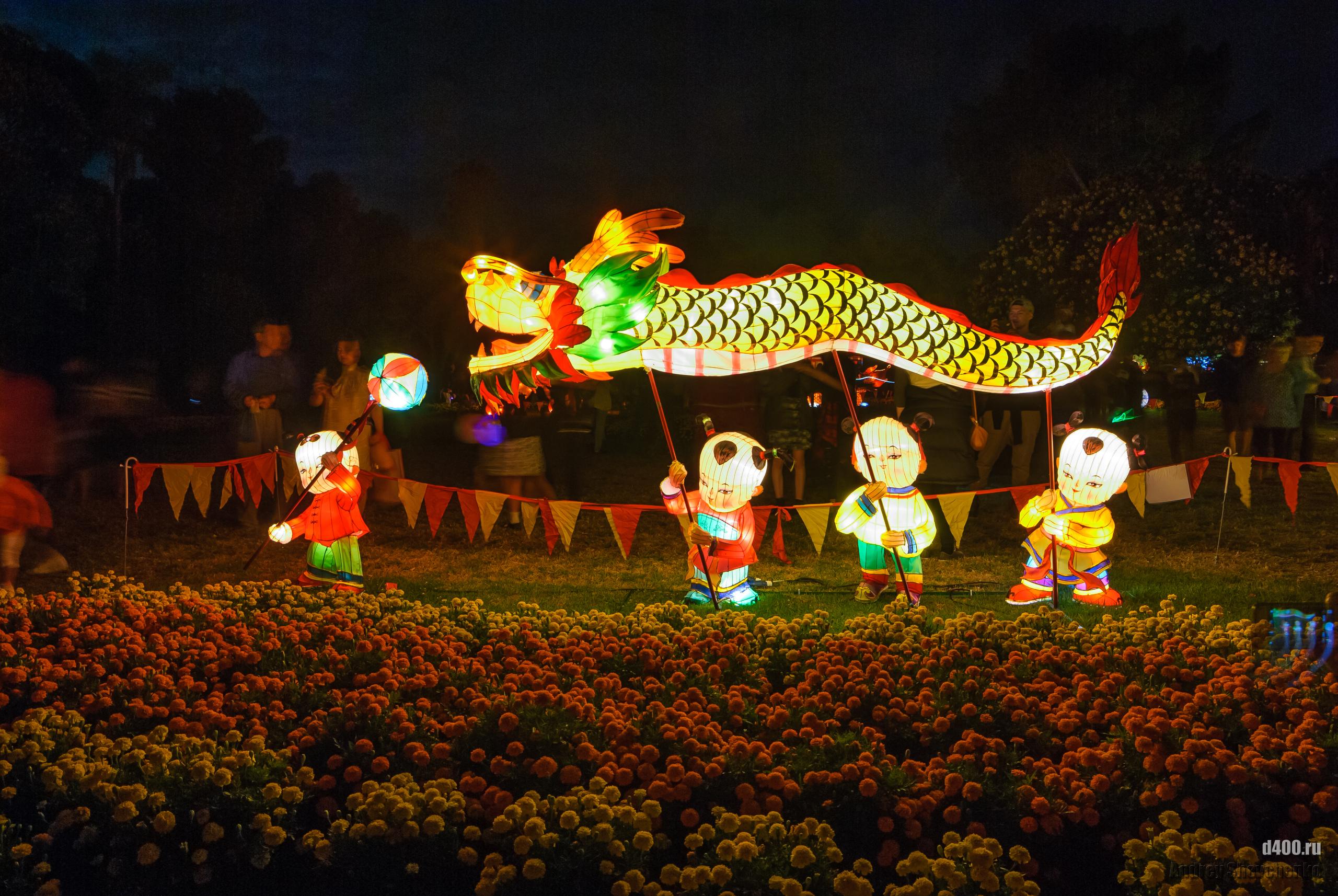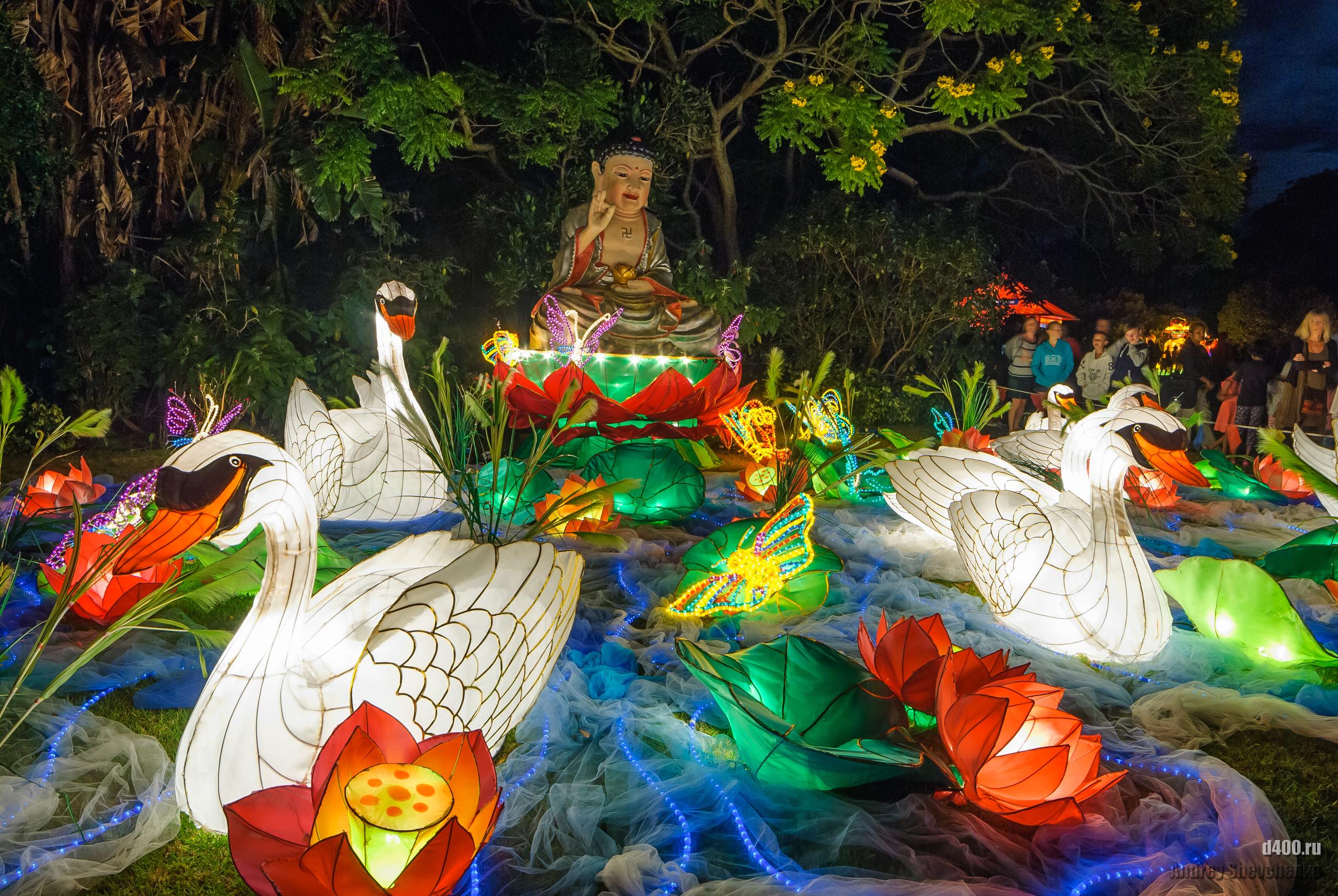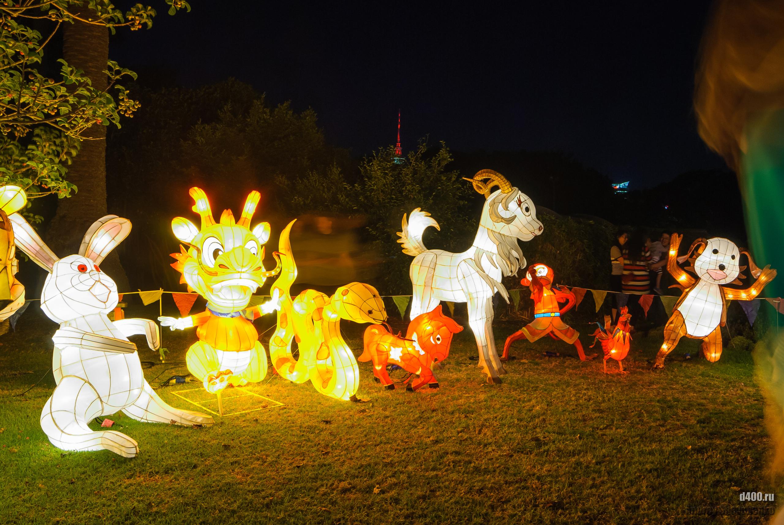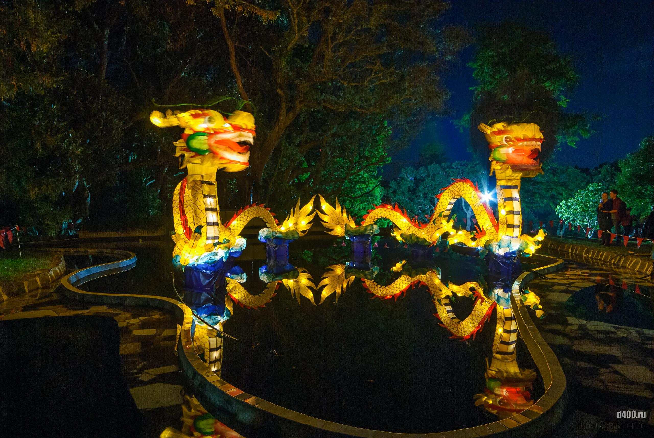 For several years now, every year on Chinese Lunar New Year, Oakland has hosted a Chinese Lantern Festival. Although I would call these glowing sculptures 🙂 for they are very large for flashlights. Several hundred glowing figurines were collected in Oakland's Domein Park (more than 800 according to official records). Some were funny, some were more or less gaunt 🙂 Besides the lanterns, the trees lit up with different colors looked cool.