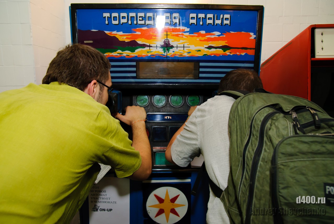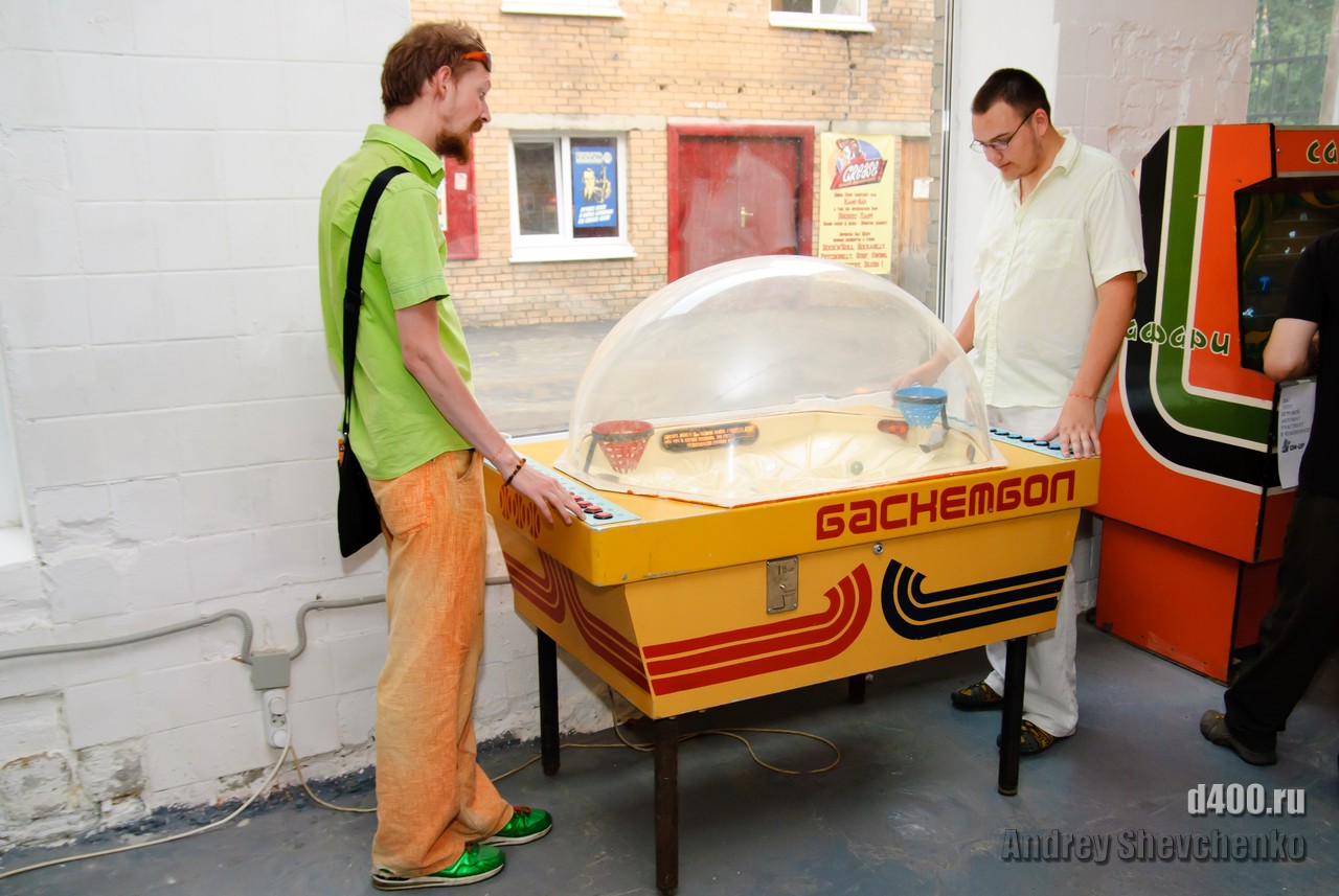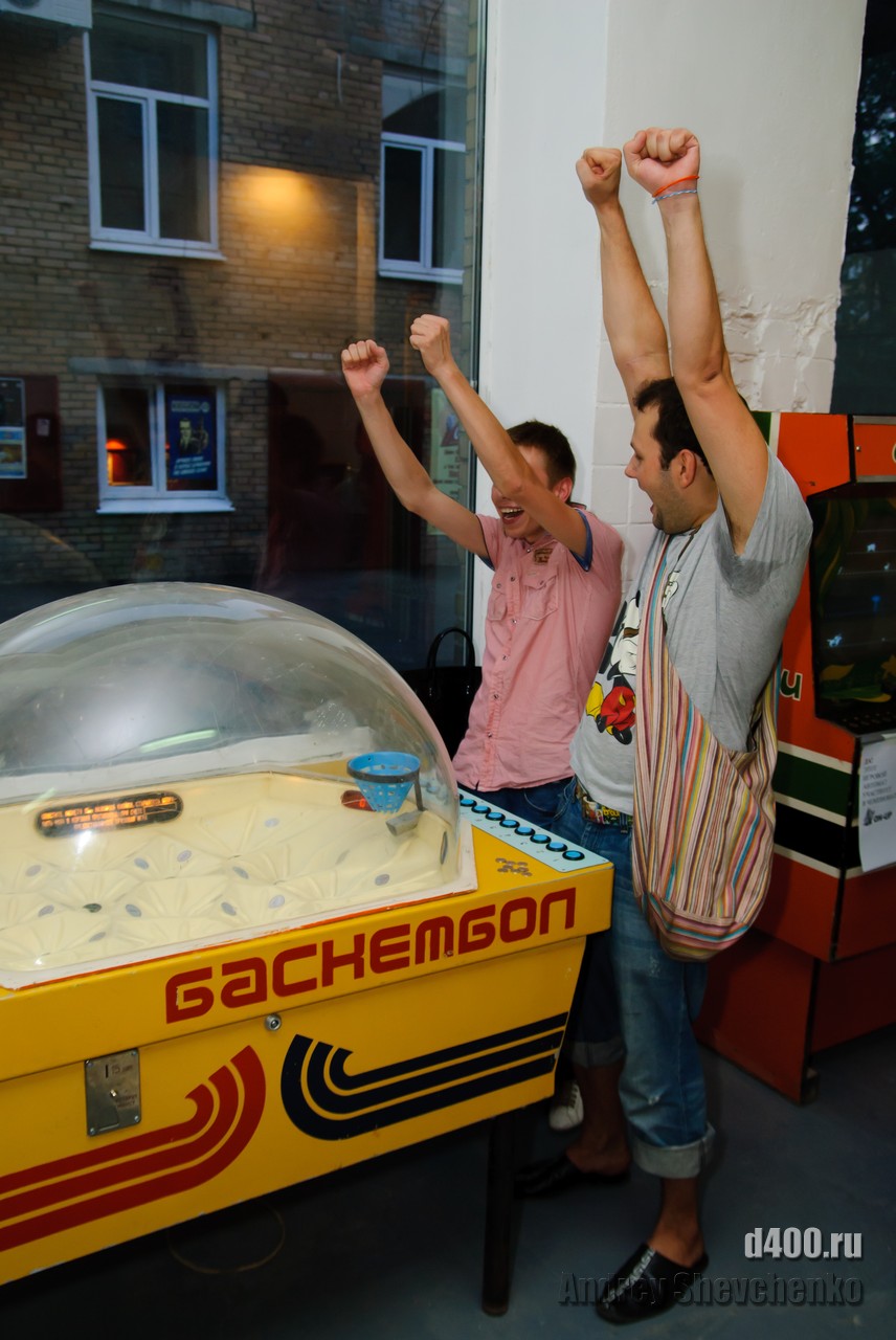 Роботы против нас! Так гласила афиша, около которой штабелями падали молодые и не очень люди. Еще бы, ностальгия, по игровым автоматам у рожденных в 70-80 годах, течет в крови… наверняка все помнят как родители выволакивали детей из залов с игровыми автоматами и мотивировали к учебе в школе, в обмен на 15-ти копеечные монетки. Теперь когда эти дяди и тети смогли заработать себе немножко своих монеток им устроили невероятный праздник и пустили поиграть на автоматах столько, сколько угодно! Смотрим и завидуем… 739650969