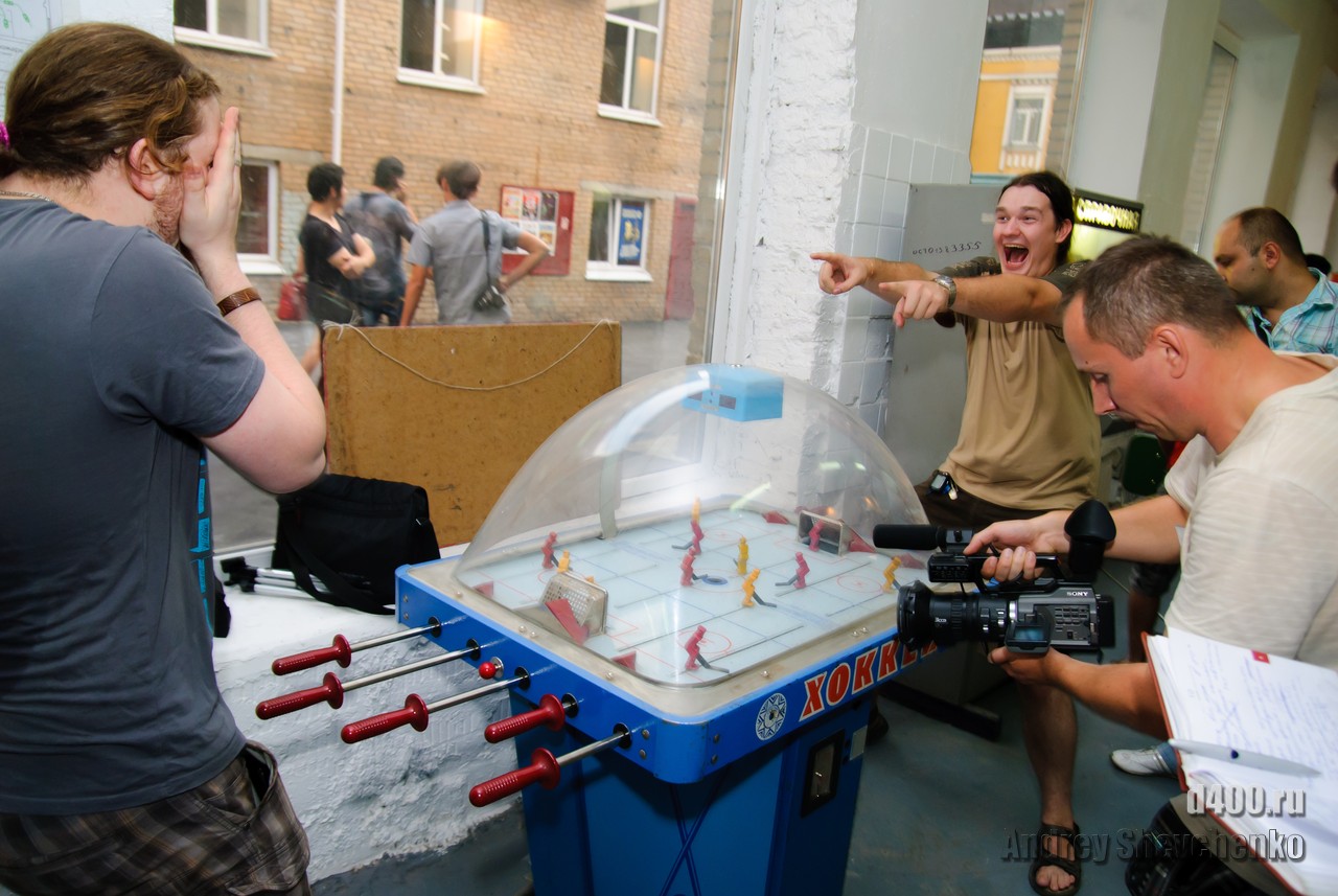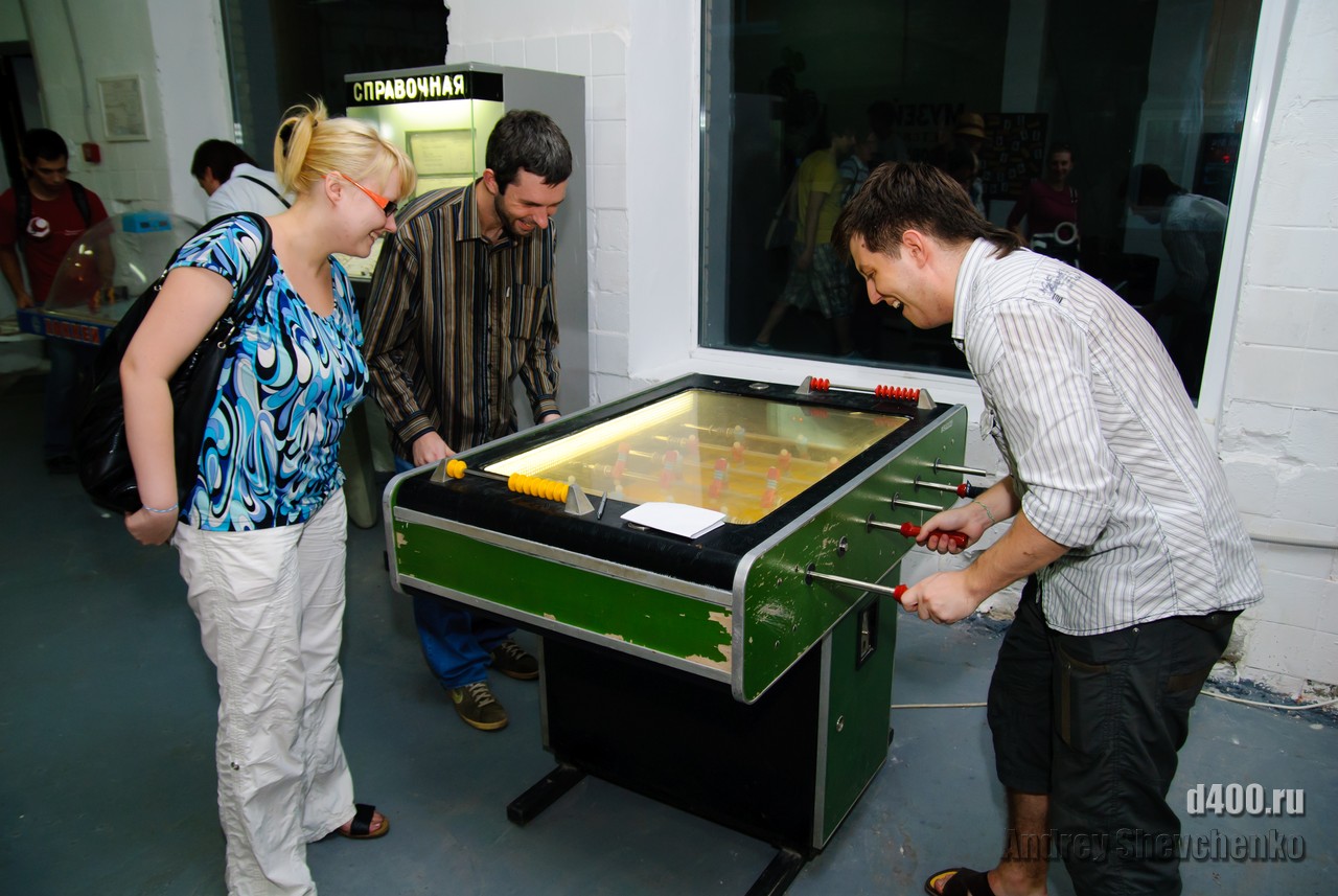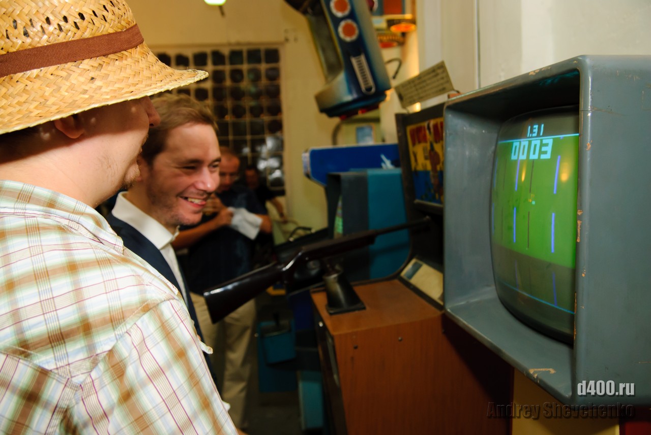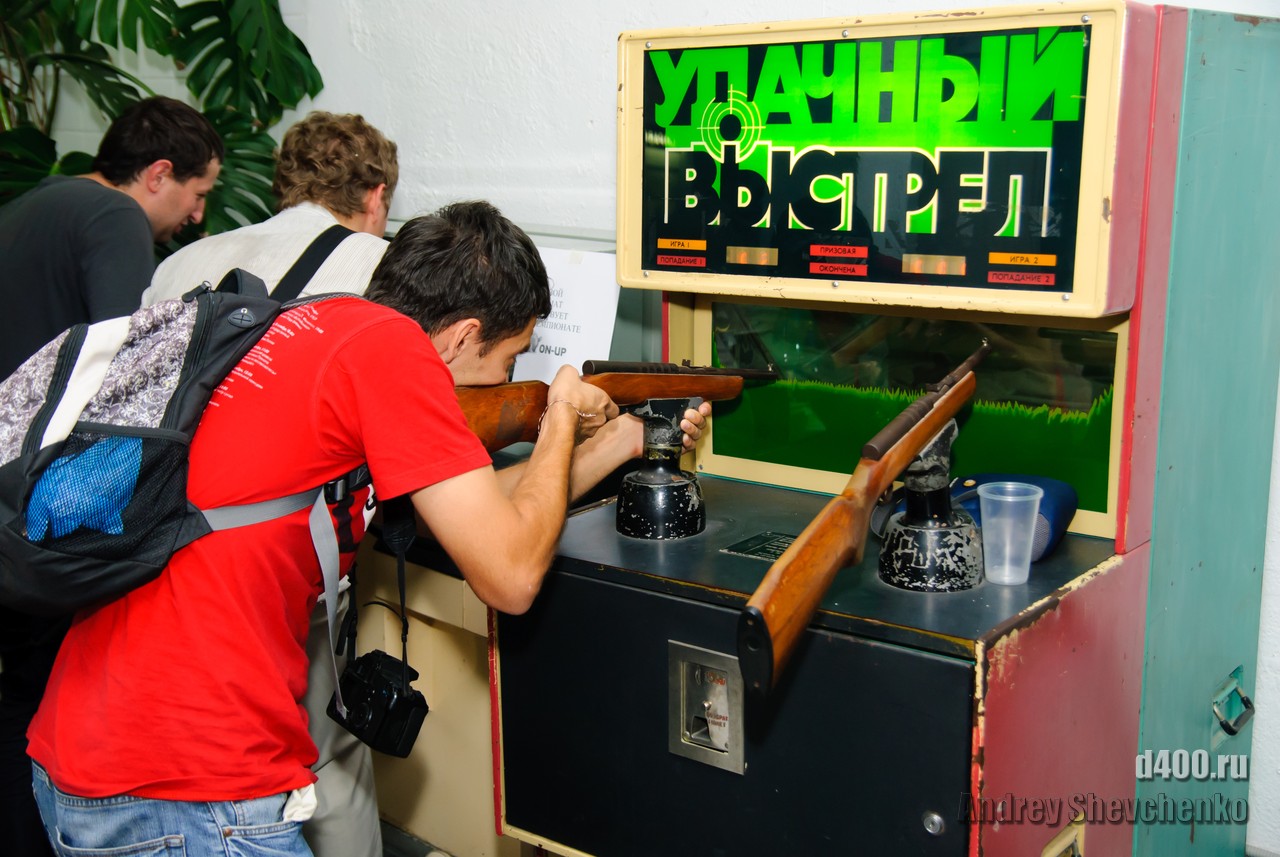 Роботы против нас! Так гласила афиша, около которой штабелями падали молодые и не очень люди. Еще бы, ностальгия, по игровым автоматам у рожденных в 70-80 годах, течет в крови… наверняка все помнят как родители выволакивали детей из залов с игровыми автоматами и мотивировали к учебе в школе, в обмен на 15-ти копеечные монетки. Теперь когда эти дяди и тети смогли заработать себе немножко своих монеток им устроили невероятный праздник и пустили поиграть на автоматах столько, сколько угодно! Смотрим и завидуем… 739650969