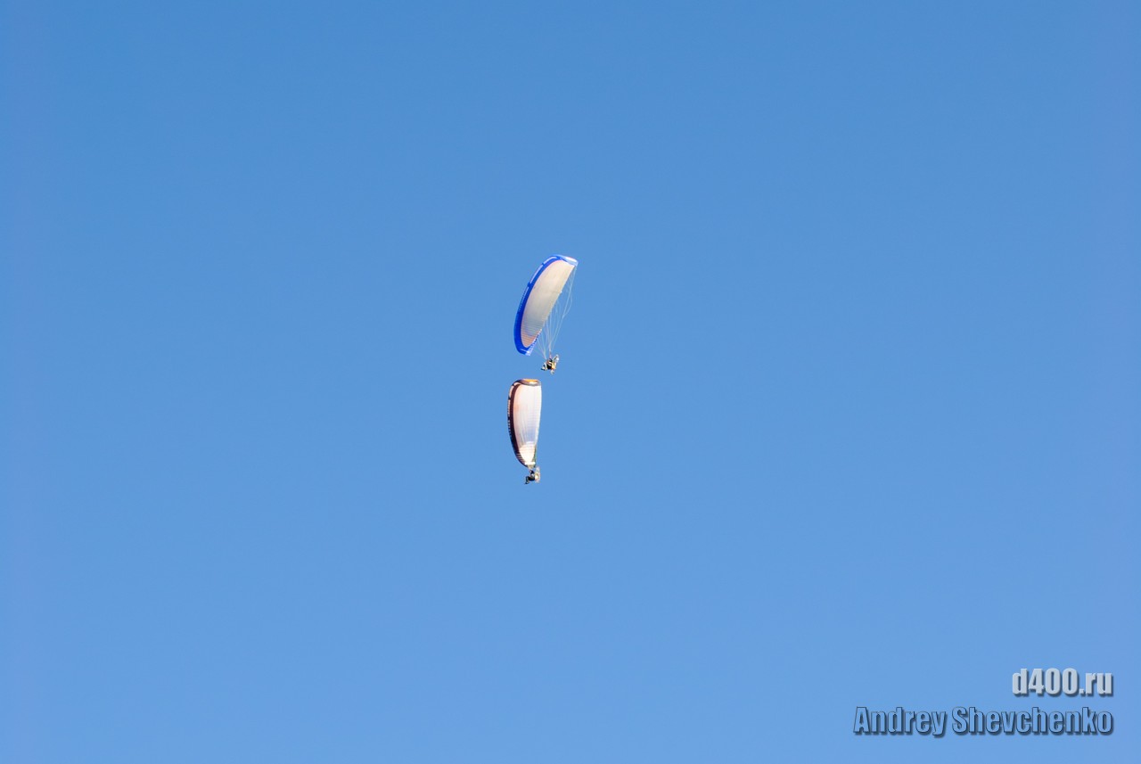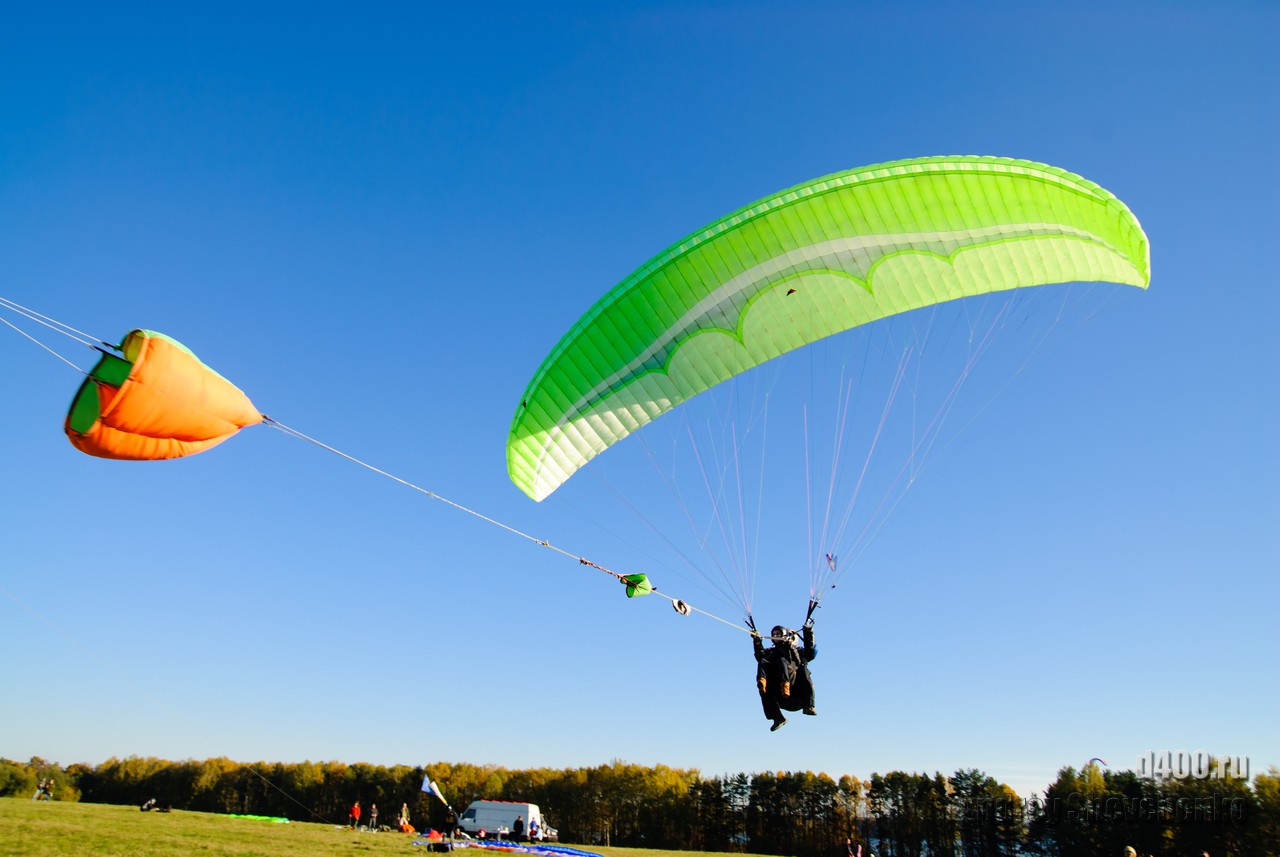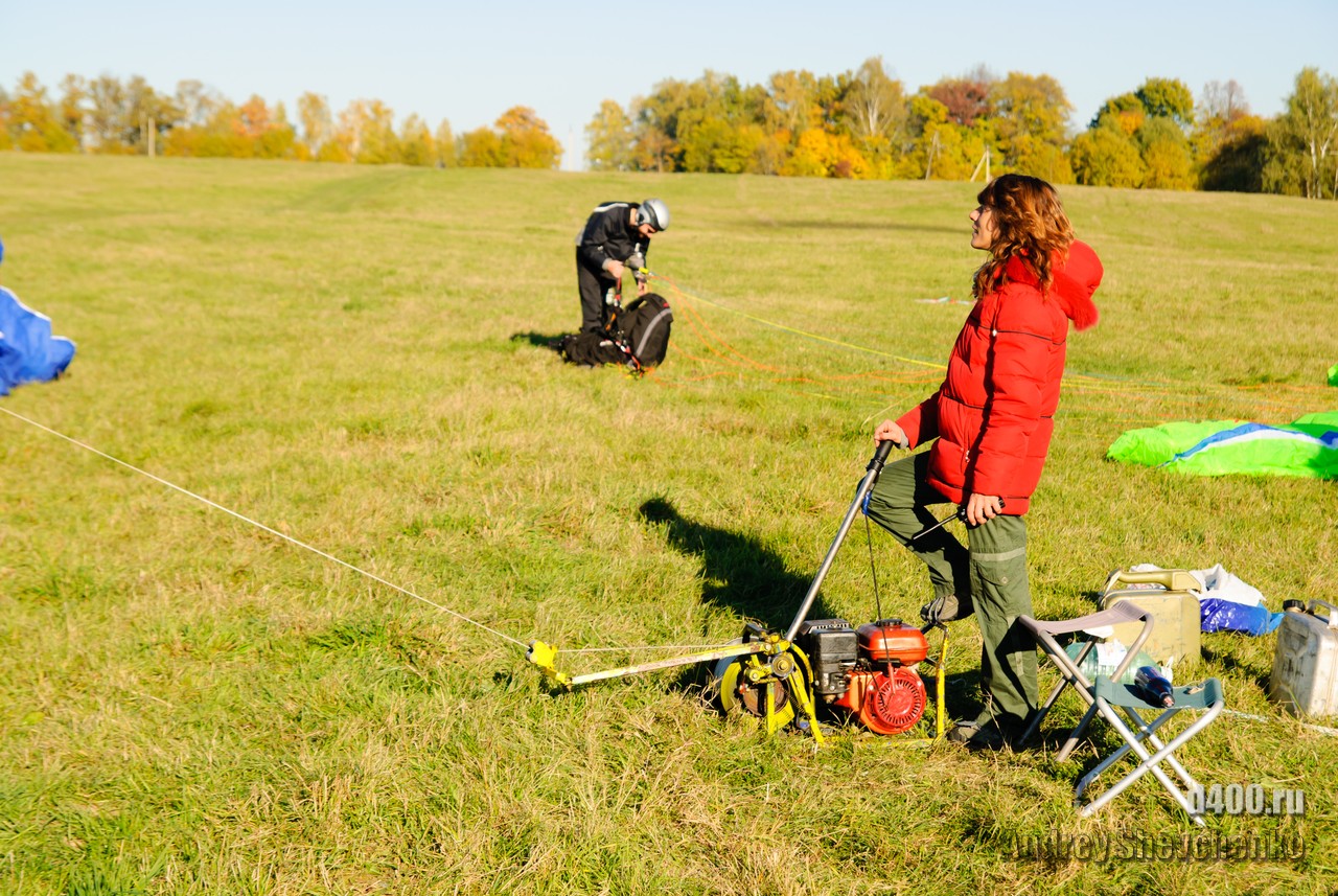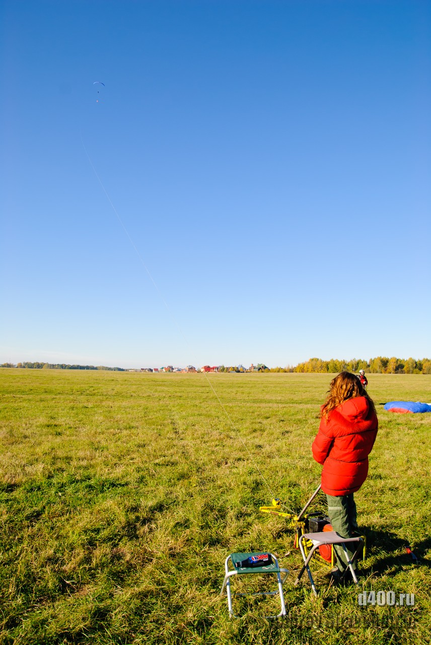 Парапланерная школа Free Fly Team. Параплан на равнинной местности поднимают в воздух с помощью системы из 2-х лебедок, между которыме натянут канат. Во время старта параплан цепляется за канат и дальняя, более мощная начинает наматывать канат и в итоге параплан поднимается в воздух. При достежении нужной высоты канат отцепляется и падает на землю при этом второй лебедкой, на месте старта он подтягивается чтобы запустить следующе летуна.