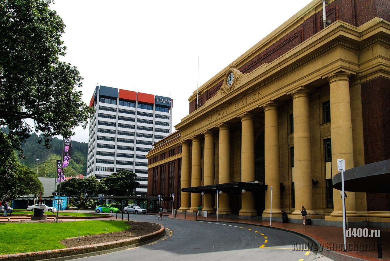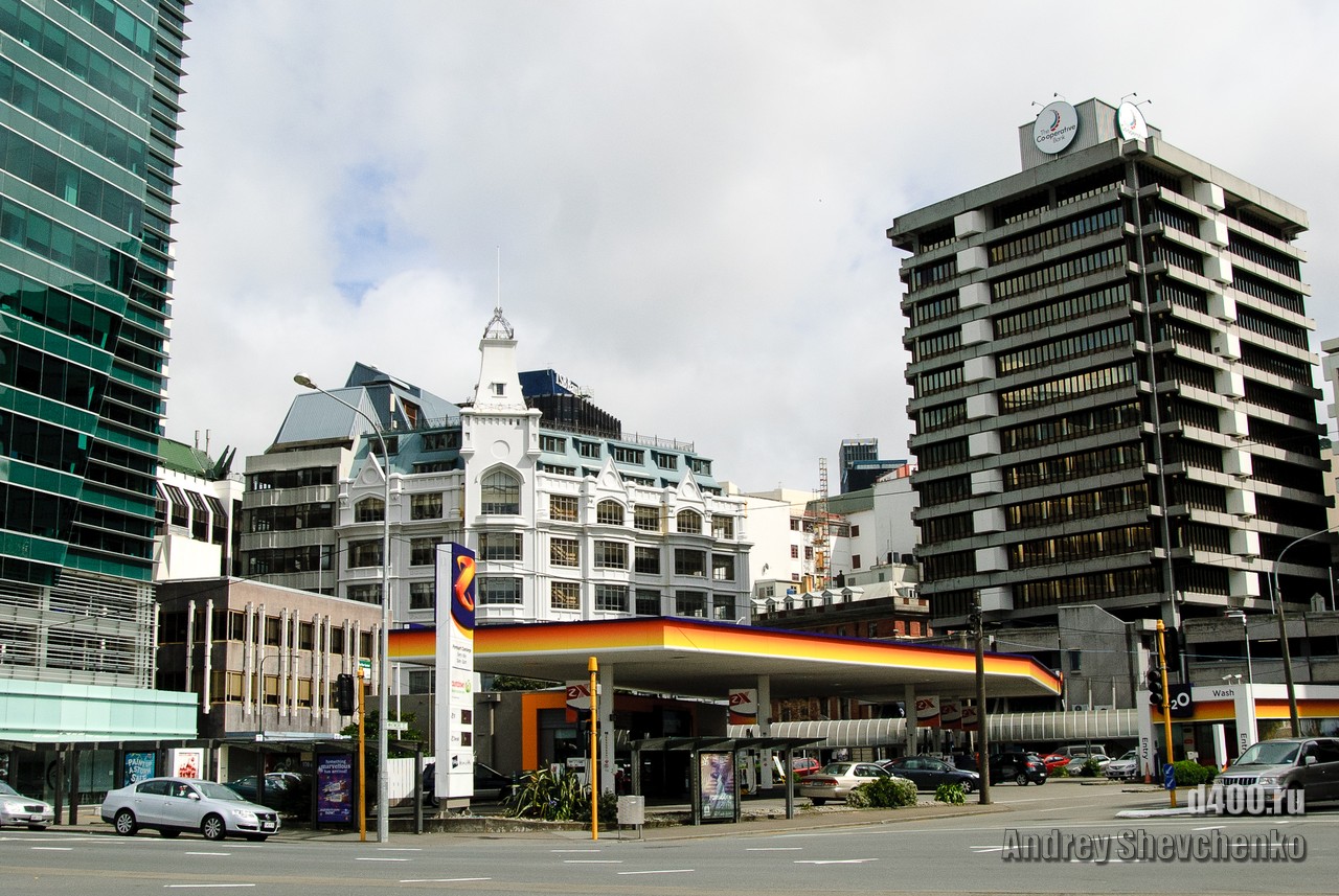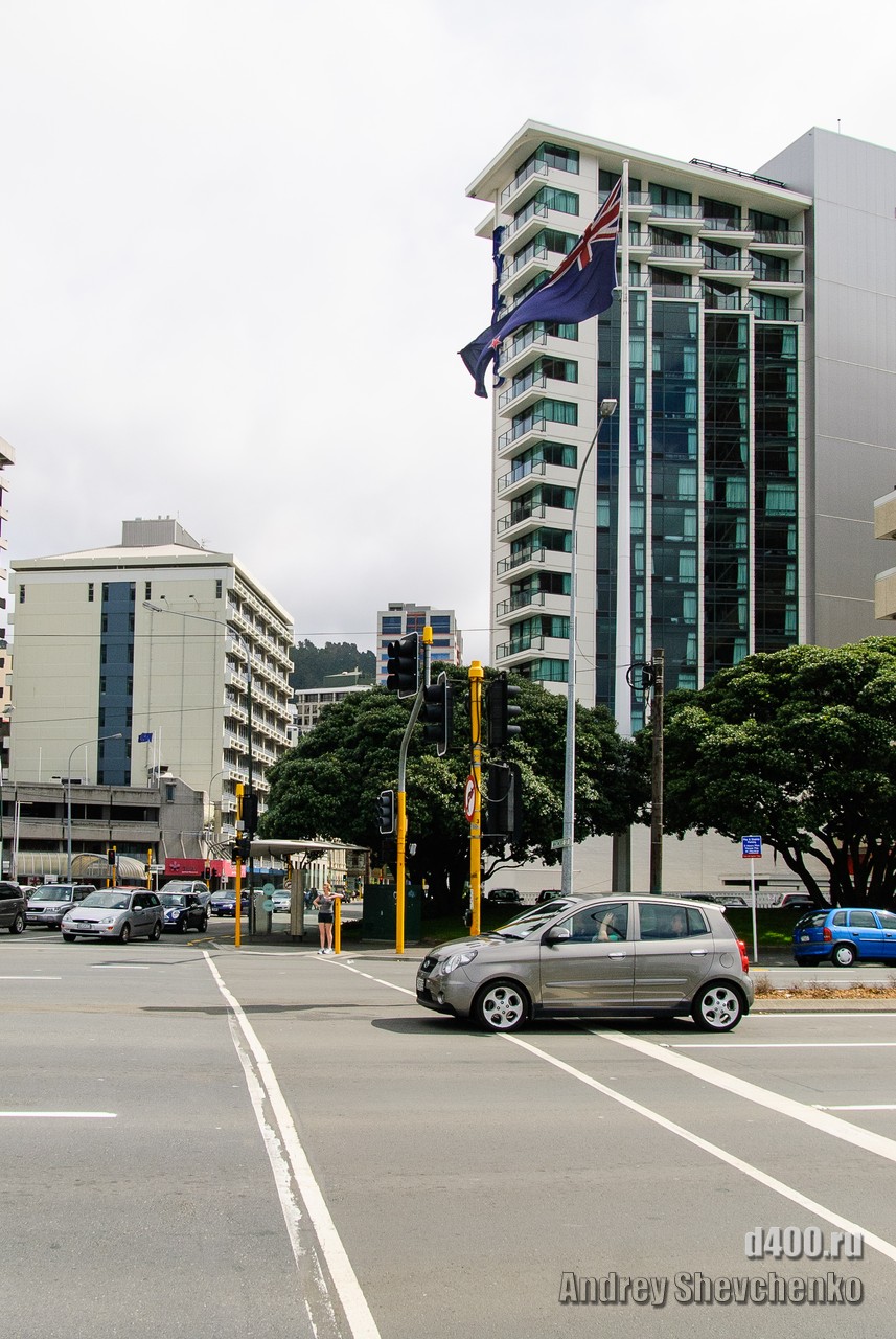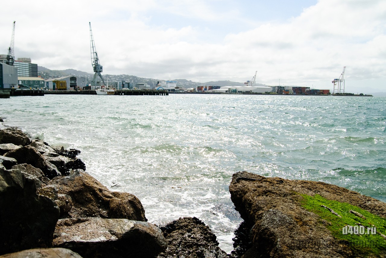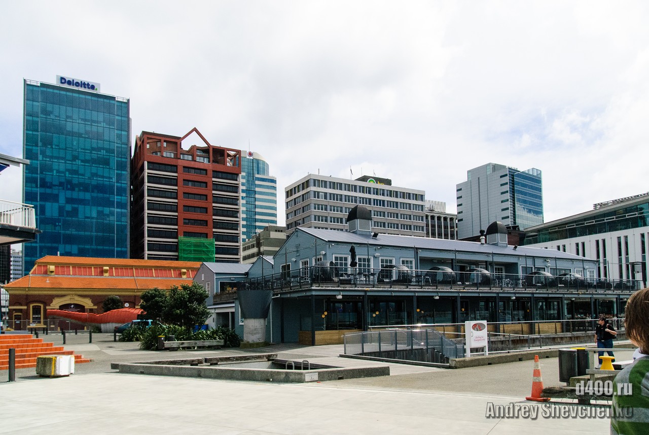 Местные называют свой город «Windy Wellington» то есть Ветреный Веллингтон. Город находится на крайней точке Северного острова Новой Зеландии. Два острова, Северный и Южный, своим контуром образуют воронку, проходя по которой, ветер, усиливается из-за уменьшения расстояния между островами. Вот в самом узком месте и находится Веллинтон. Ветер достаточно холодный и продувал даже 2 футболки и толстовку. Для иллюстрации силы ветра я даже снял видео как вода колышется в чайнике, на 5 этаже здания. Это было точно не землетрясение, мы проверяли 🙂 Столь ветреная погода не помешала нам прогуляться по городу, тем более, что надо было идти добывать разную еду.