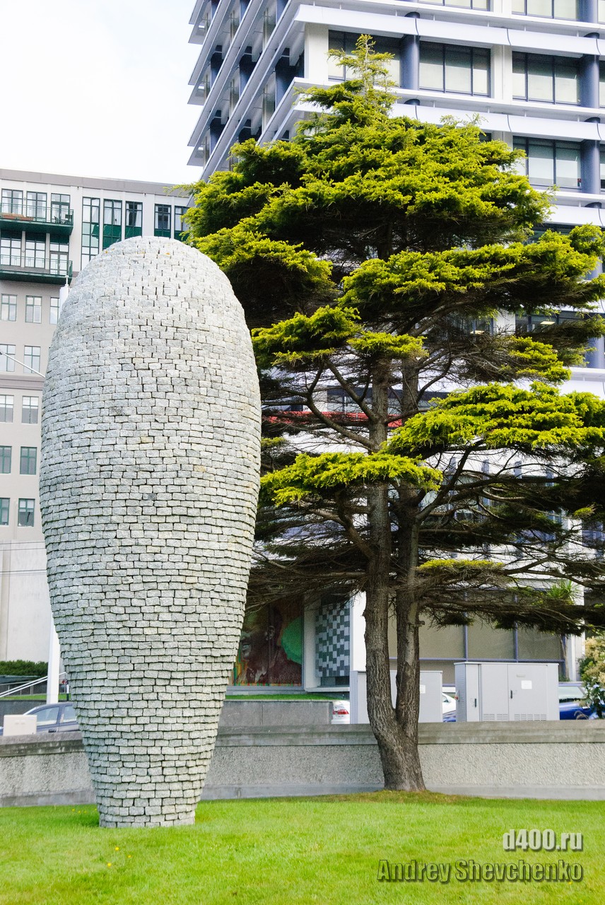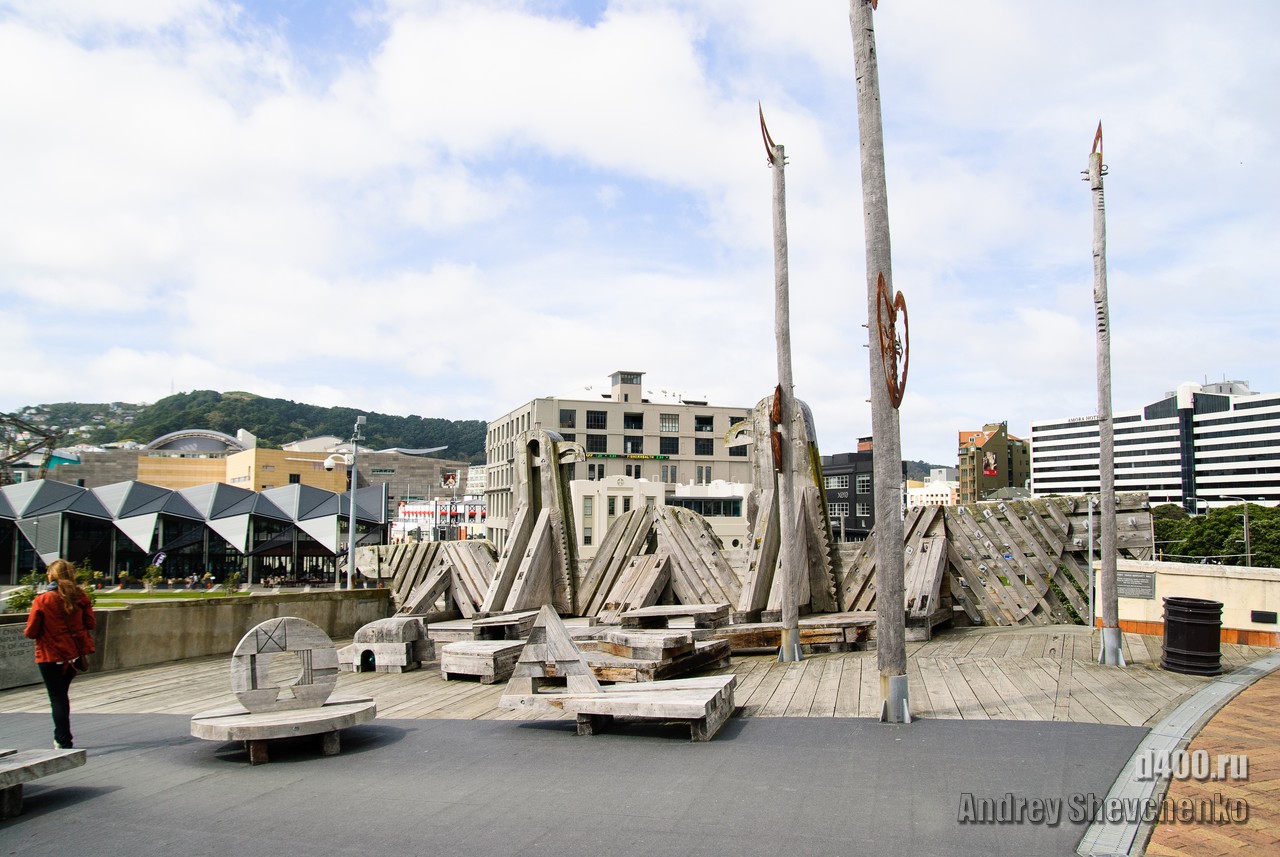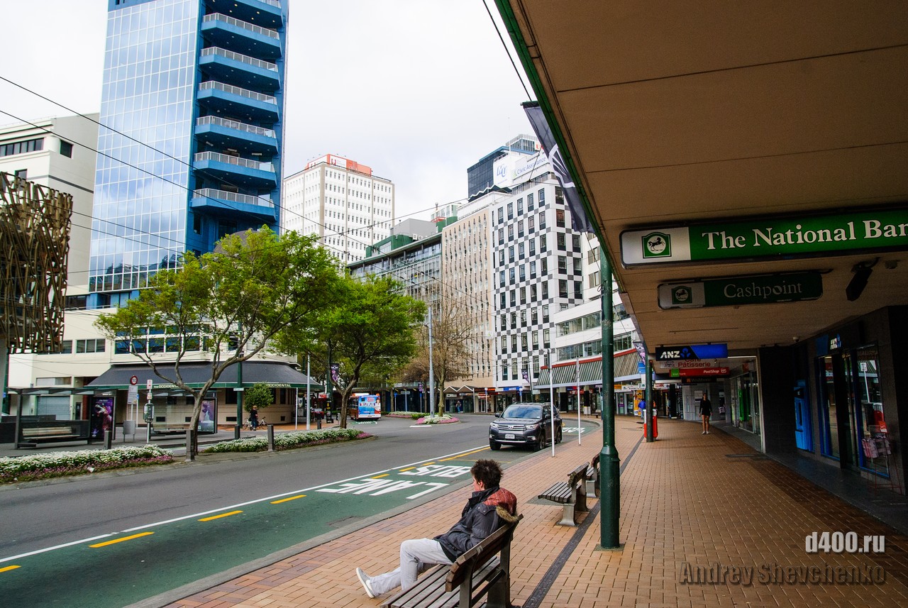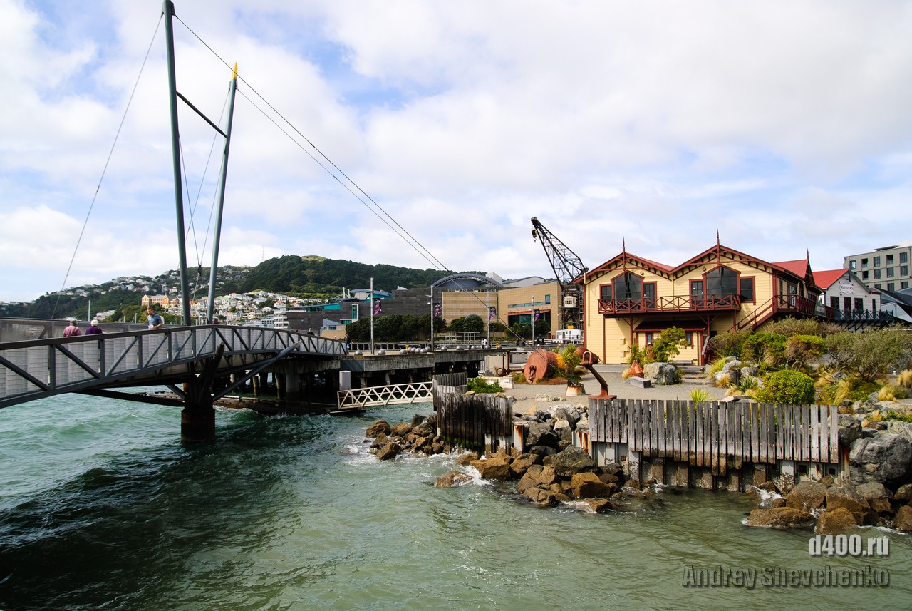 Местные называют свой город «Windy Wellington» то есть Ветреный Веллингтон. Город находится на крайней точке Северного острова Новой Зеландии. Два острова, Северный и Южный, своим контуром образуют воронку, проходя по которой, ветер, усиливается из-за уменьшения расстояния между островами. Вот в самом узком месте и находится Веллинтон. Ветер достаточно холодный и продувал даже 2 футболки и толстовку. Для иллюстрации силы ветра я даже снял видео как вода колышется в чайнике, на 5 этаже здания. Это было точно не землетрясение, мы проверяли 🙂 Столь ветреная погода не помешала нам прогуляться по городу, тем более, что надо было идти добывать разную еду.