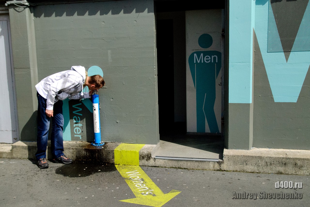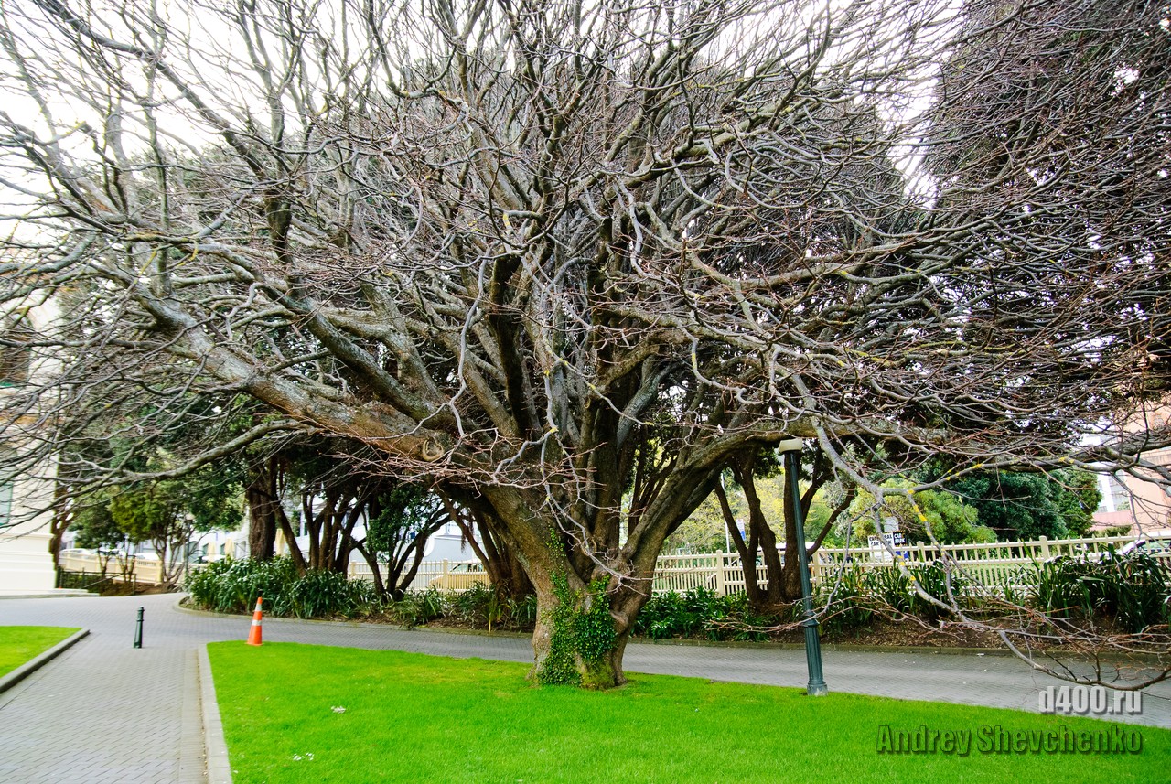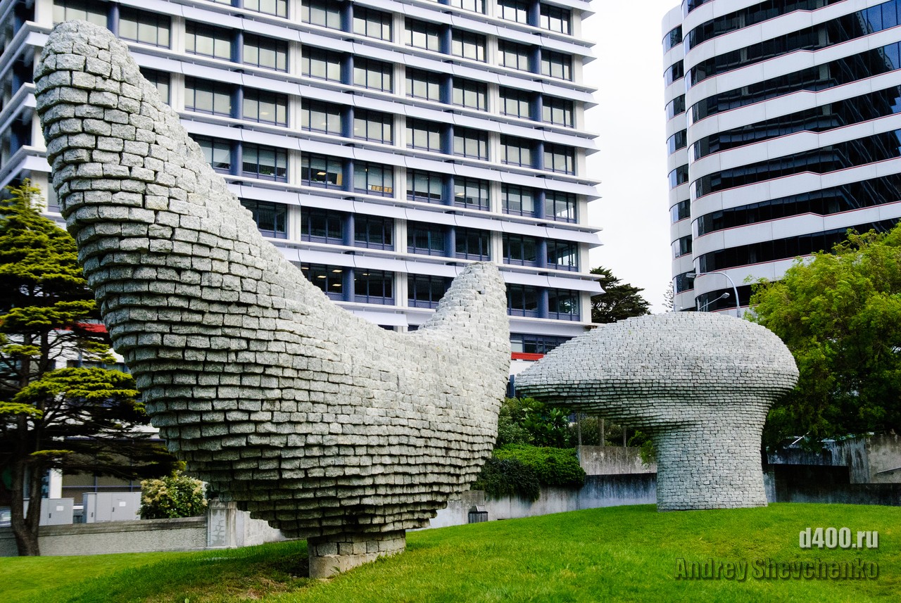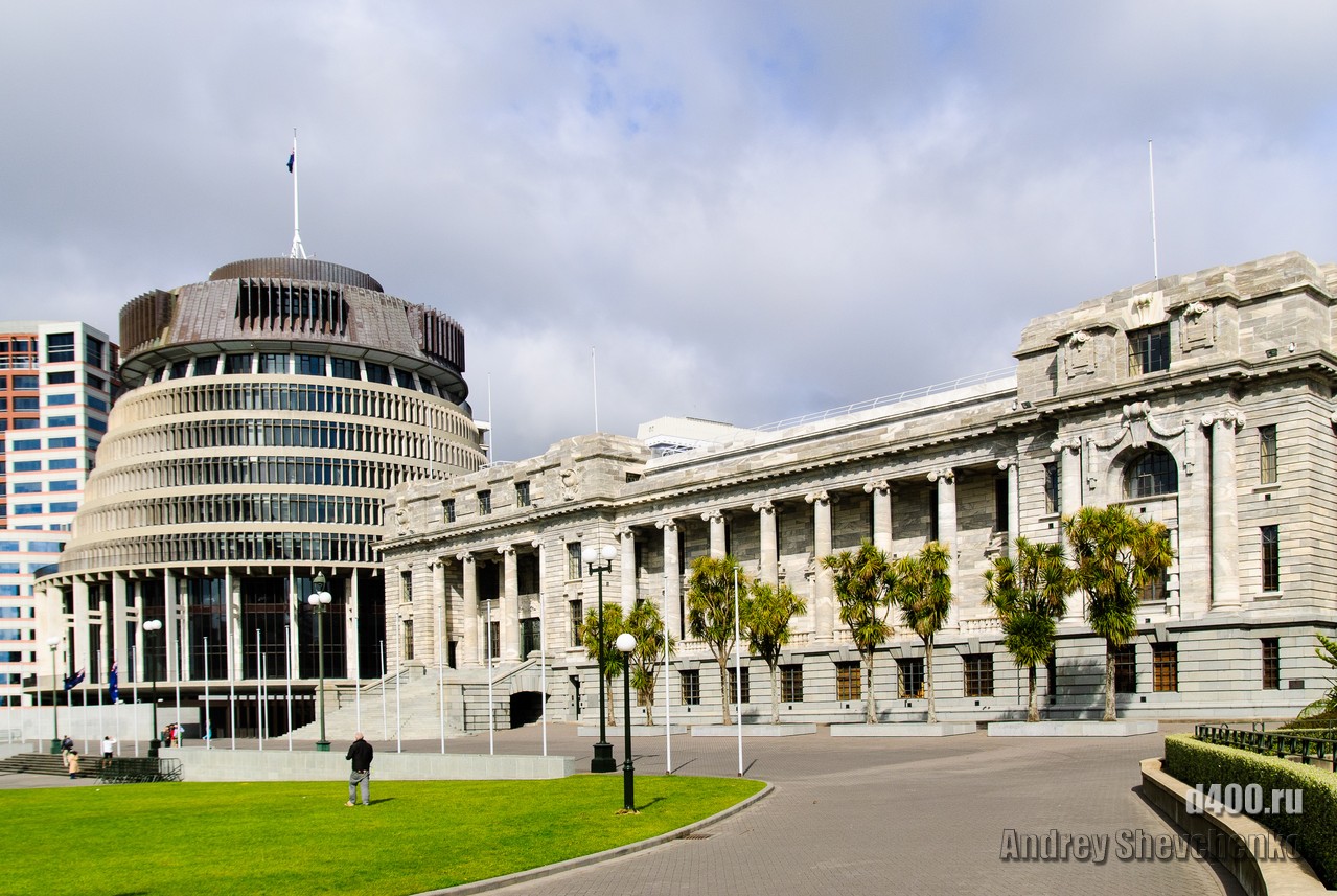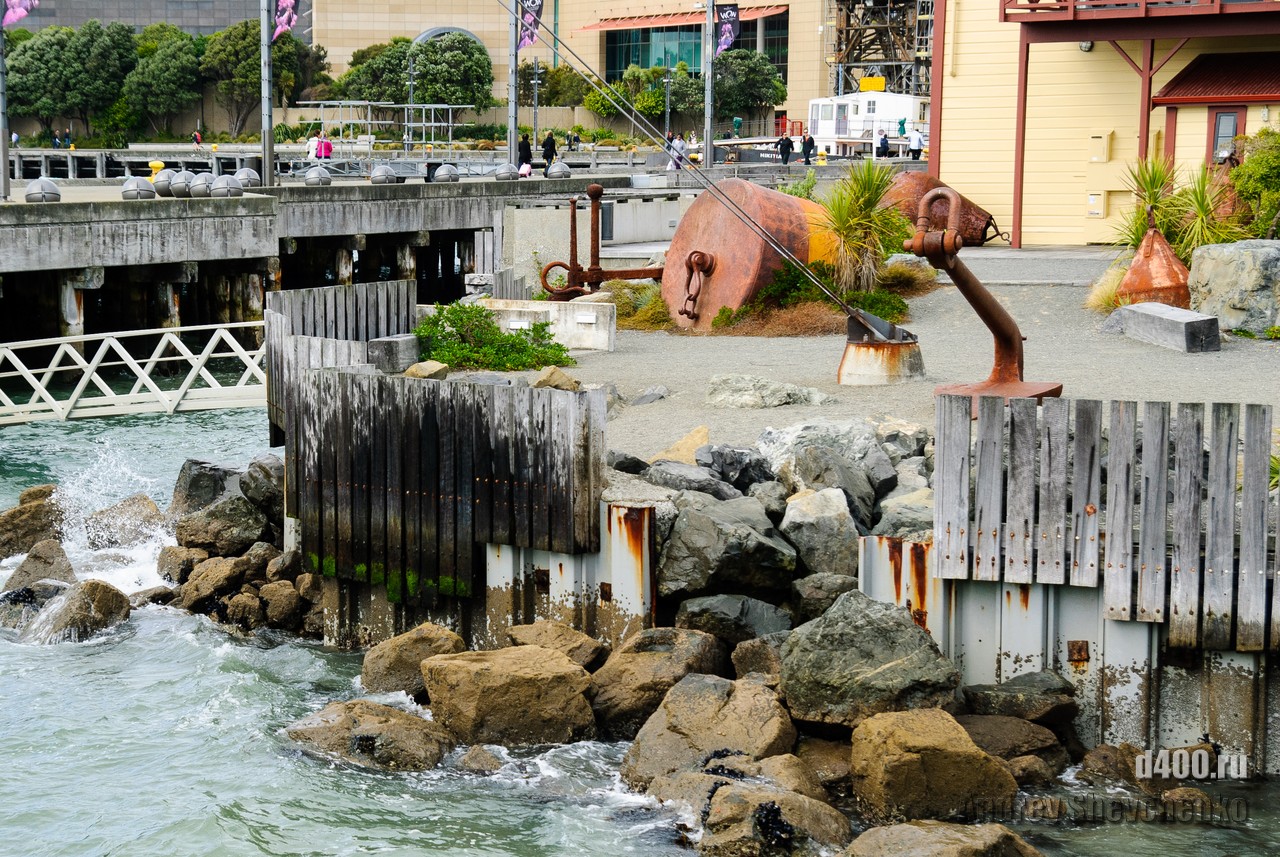 Местные называют свой город «Windy Wellington» то есть Ветреный Веллингтон. Город находится на крайней точке Северного острова Новой Зеландии. Два острова, Северный и Южный, своим контуром образуют воронку, проходя по которой, ветер, усиливается из-за уменьшения расстояния между островами. Вот в самом узком месте и находится Веллинтон. Ветер достаточно холодный и продувал даже 2 футболки и толстовку. Для иллюстрации силы ветра я даже снял видео как вода колышется в чайнике, на 5 этаже здания. Это было точно не землетрясение, мы проверяли 🙂 Столь ветреная погода не помешала нам прогуляться по городу, тем более, что надо было идти добывать разную еду.