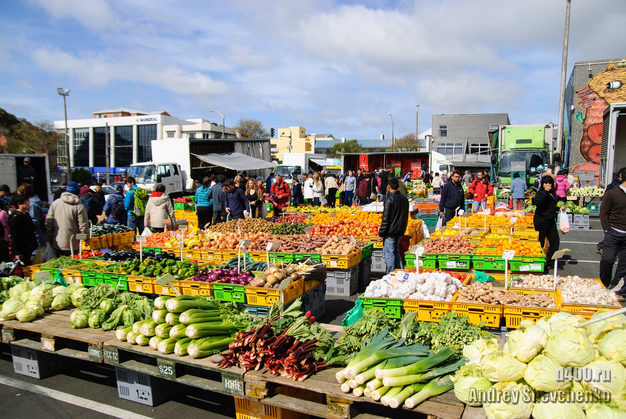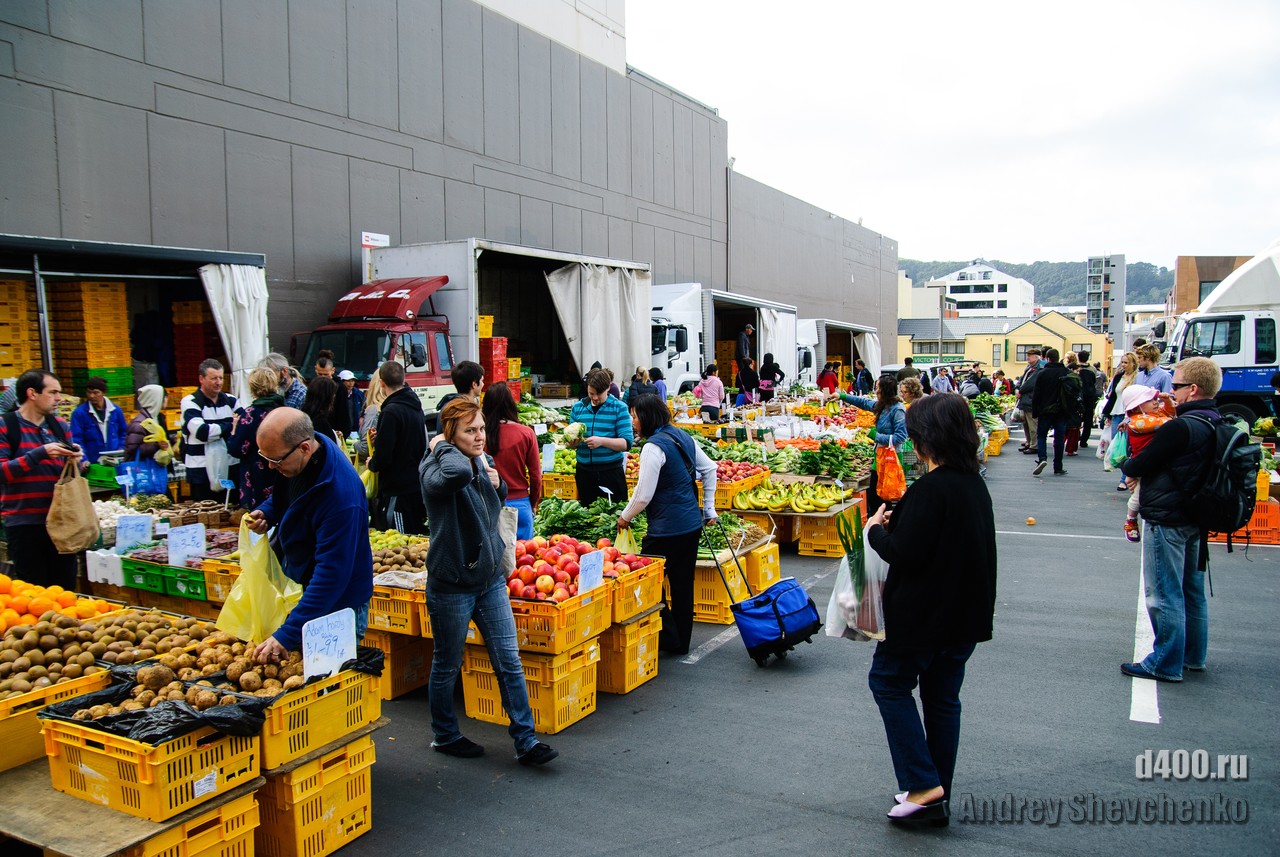 Очень популярное место шоппинга веллингтонцев. Практически все овощи и фрукты по 2 доллара (примерно 52 рубля) за килограмм.