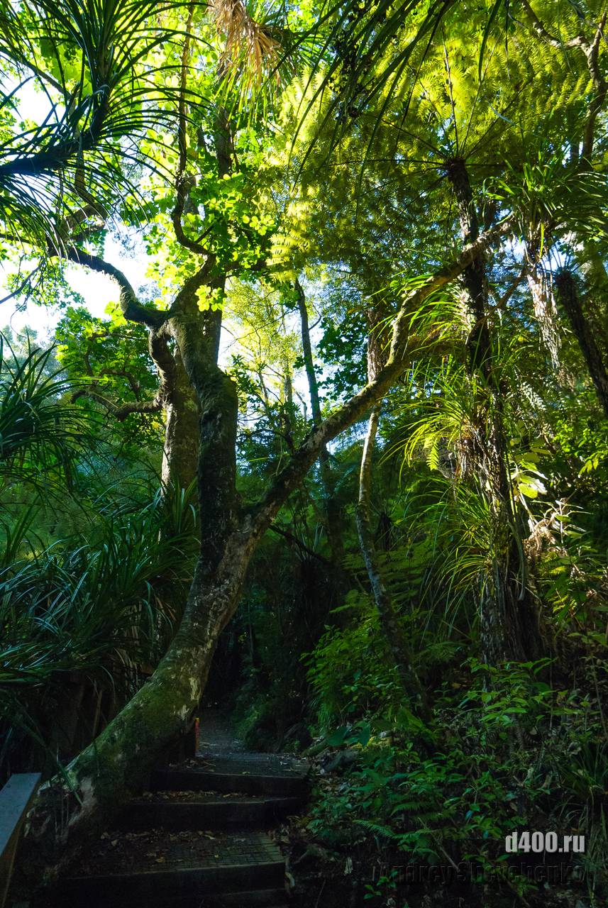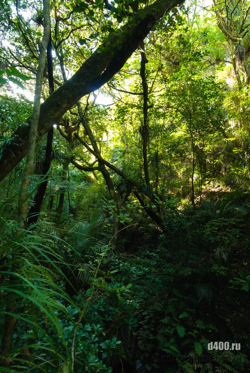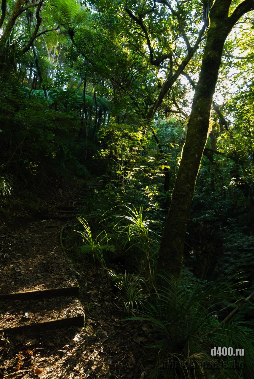 Лес Лероя, достаточно известный уголок природы в северной части Окленда. Известен прежде всего перепадом высот от уровня моря до… незнаю до скольки написано до самой высокой точки на Norhshore. 🙂 Исторически тропы в этом лесу использовались Маори для доставки продуктов морского лова в свои деревни. Сейчас эти непроходимые заросли используются для прогулок, экстремального бега с большим перепадом высот, ну для наблюдений за дикой природой.