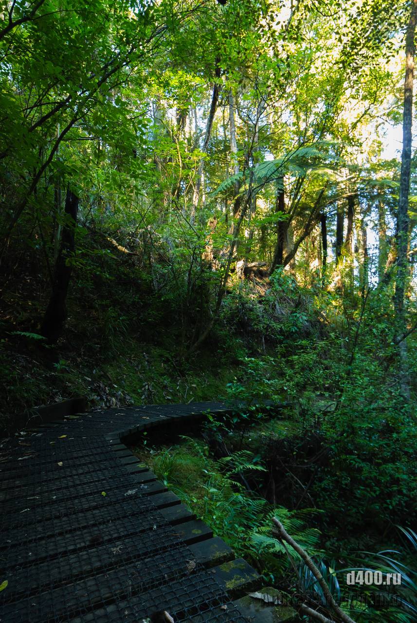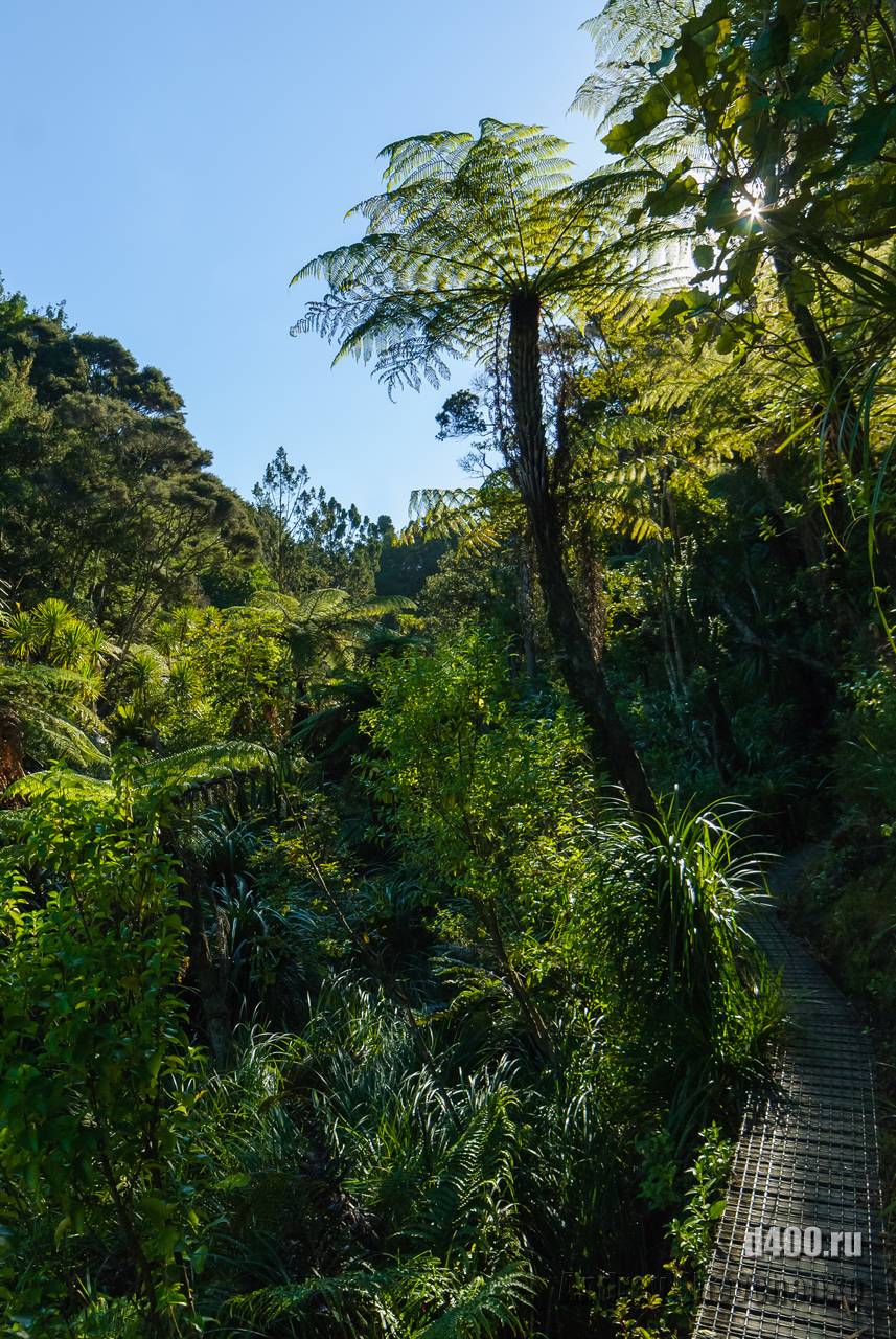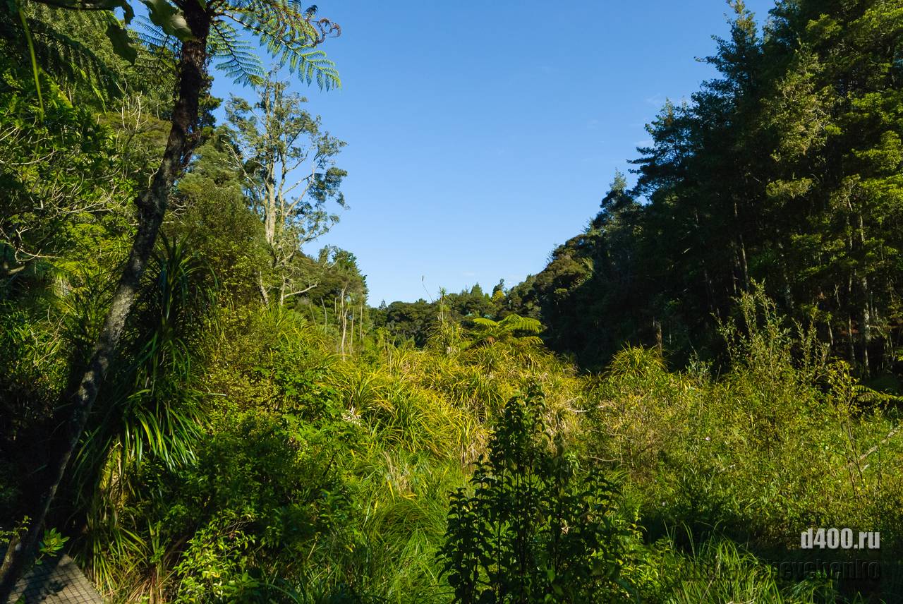 Лес Лероя, достаточно известный уголок природы в северной части Окленда. Известен прежде всего перепадом высот от уровня моря до… незнаю до скольки написано до самой высокой точки на Norhshore. 🙂 Исторически тропы в этом лесу использовались Маори для доставки продуктов морского лова в свои деревни. Сейчас эти непроходимые заросли используются для прогулок, экстремального бега с большим перепадом высот, ну для наблюдений за дикой природой.